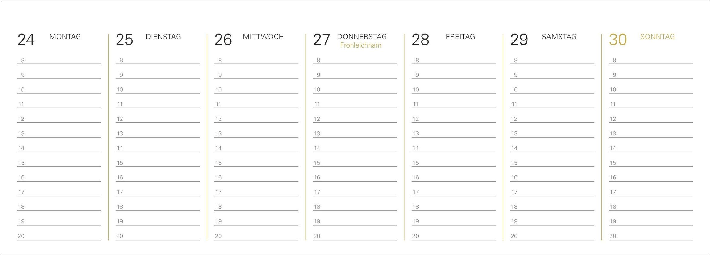 Jede Woche aufs Umblättern freuen: Tischplaner mit Spiralbindung, hochwertigem Papier und Hardcover-Einband im Querformat 29 x 11 cm