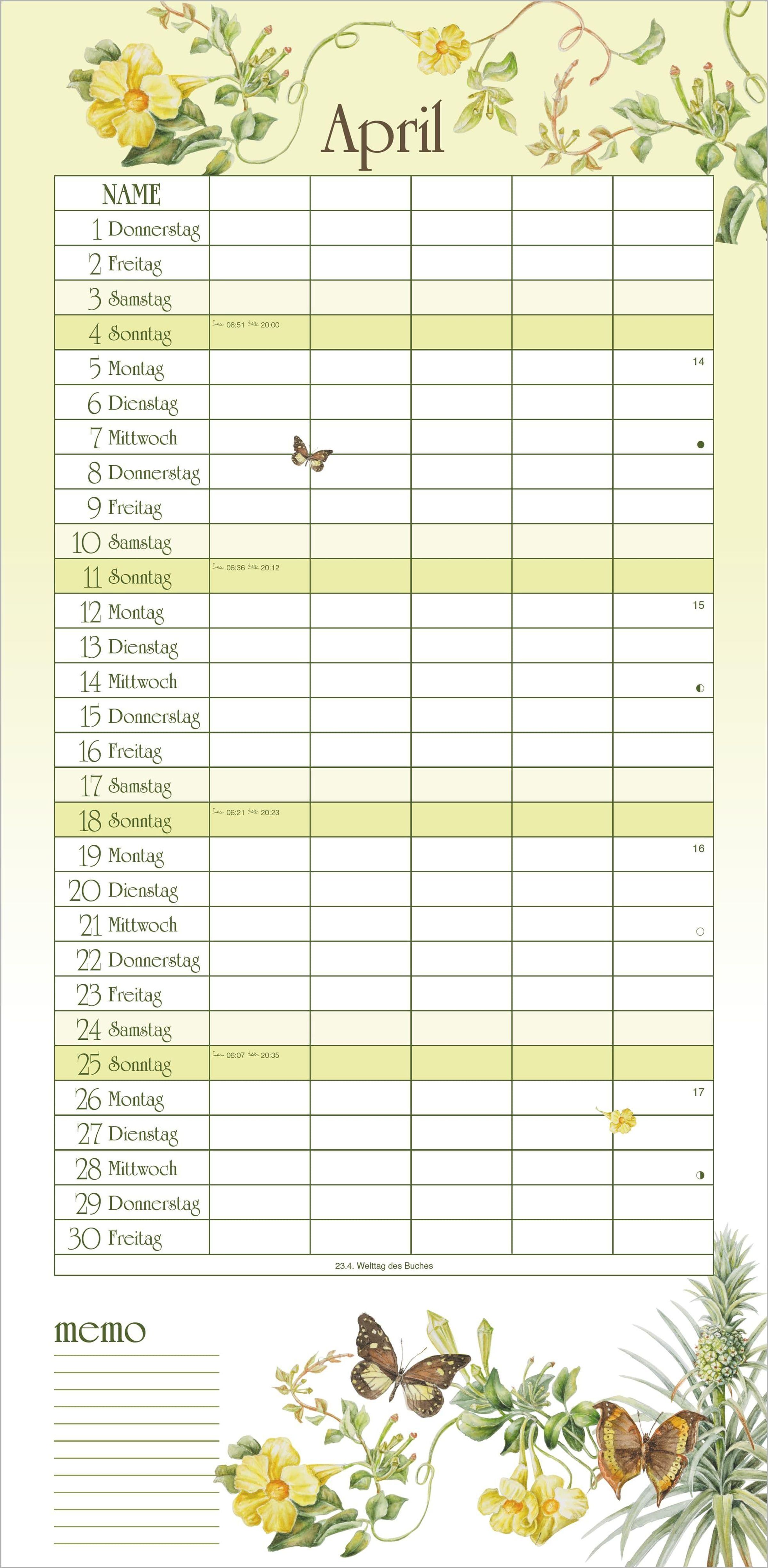 Wand-Familienkalender mit 5 Spalten im Naturzauber-Design von Janneke Brinkman | Format 22 x 45 cm