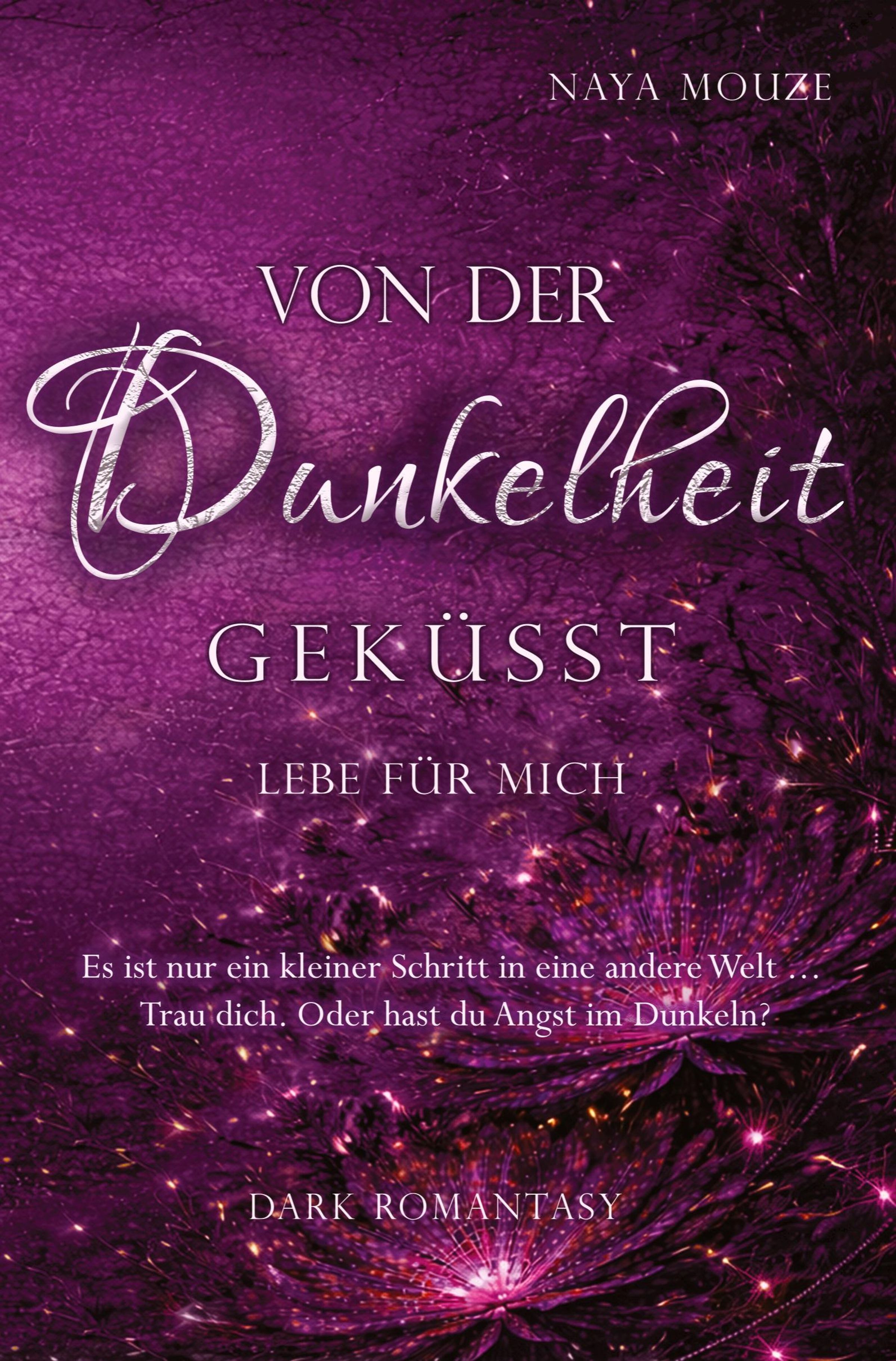"Von der Dunkelheit geküsst: Lebe für mich." Lila Hintergrund, schimmernde, mystische Muster., Buch