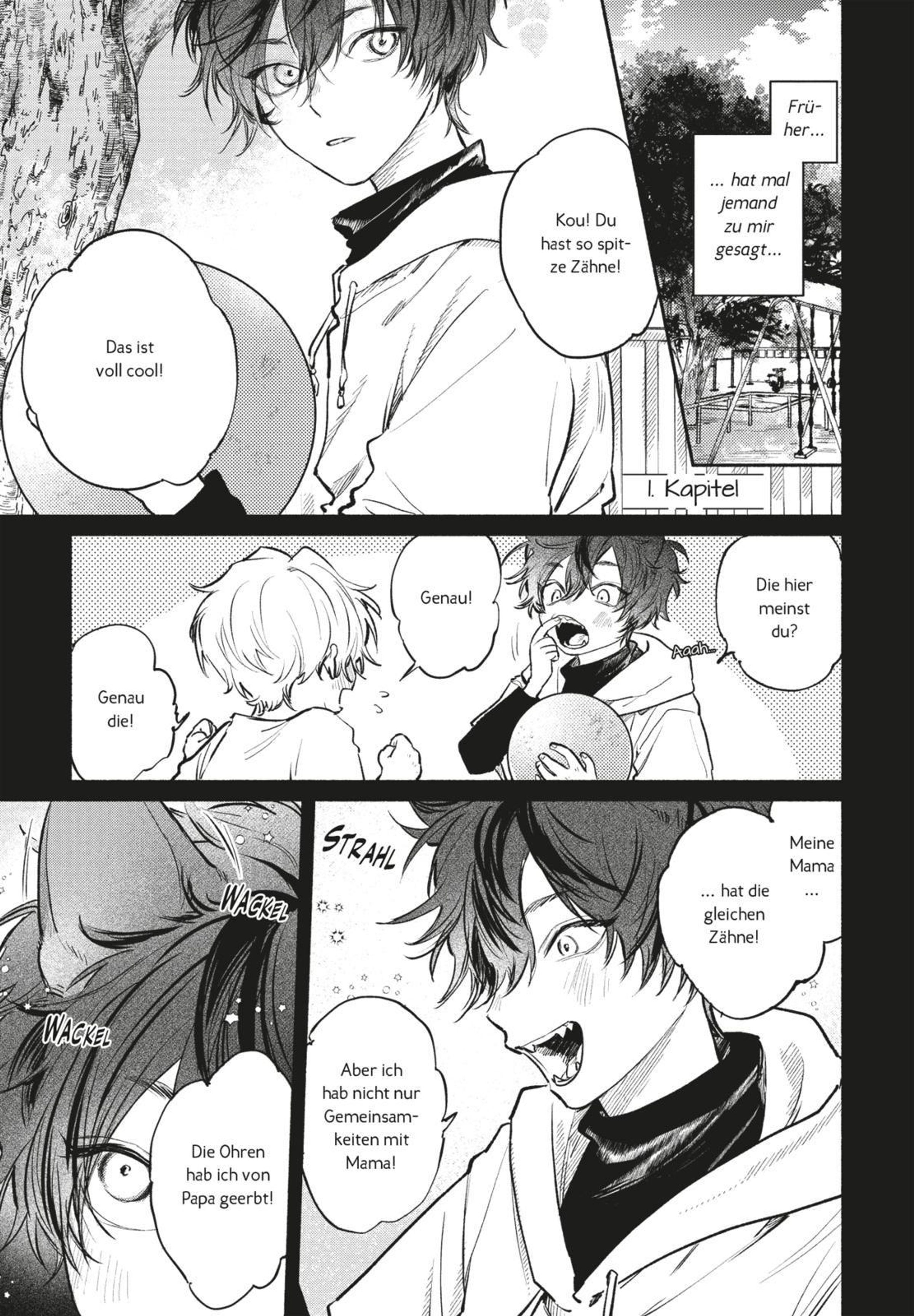 Kou ist weder Mensch noch Dämon - sondern beides. Halb Vampir, halb Werwolf, schlägt er sich mit seinen eigenen Instinkten herum und hält die Welt auf Abstand. Seit einer traumatischen Erfahrung in seiner Kindheit lässt er niemanden mehr an sich heran und geht als Griesgram durch die Welt. Doch als sein Sandkastenfreund Itsuki plötzlich wieder in sein Leben tritt, wird er unruhig und spürt wie die Sehnsucht in seinem Inneren nagt...