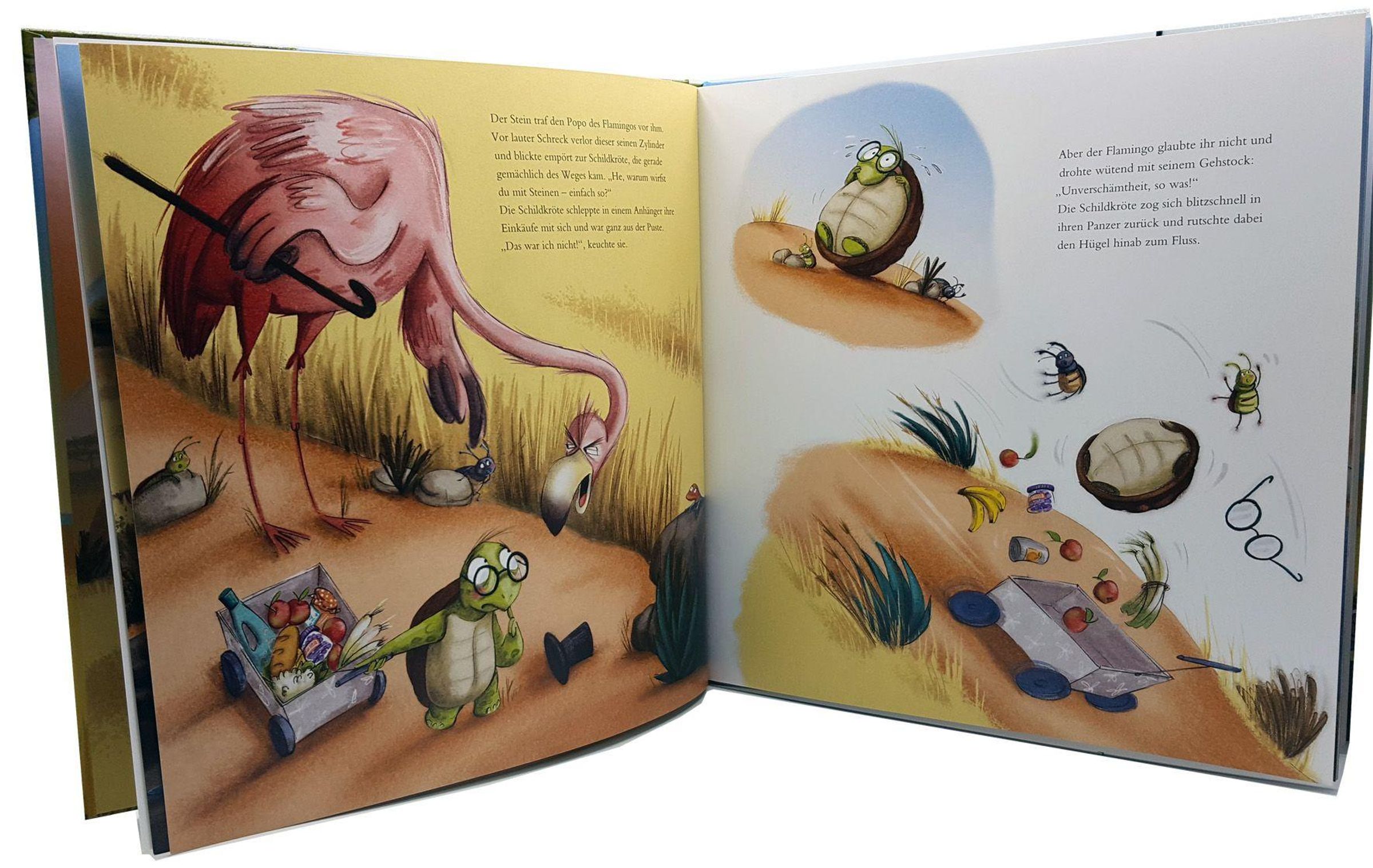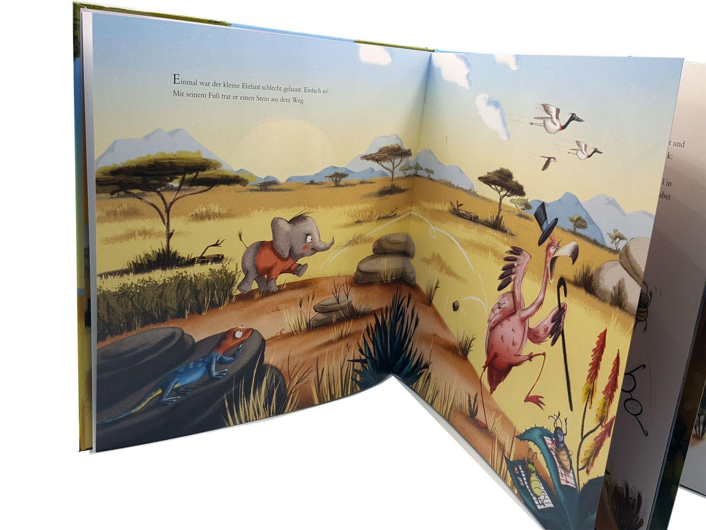 Der kleine Elefant hat schlechte Laune und tritt nach einem Stein. Aus Versehen trifft der Stein den Flamingo - und schon beginnt ein Schimpfen und Ärgern, das sich immer weiter ausbreitet. Am Fluss, im Gebüsch, in der Savanne: Einfach so! Bis ein kleines Erdmännchen genug davon hat ... und den fauchenden Leoparden einfach umarmt. Dessen Herz wird ganz leicht, und nach und nach merken alle Tiere, wie schön es ist, wenn man nett zueinander ist. Einfach so!
