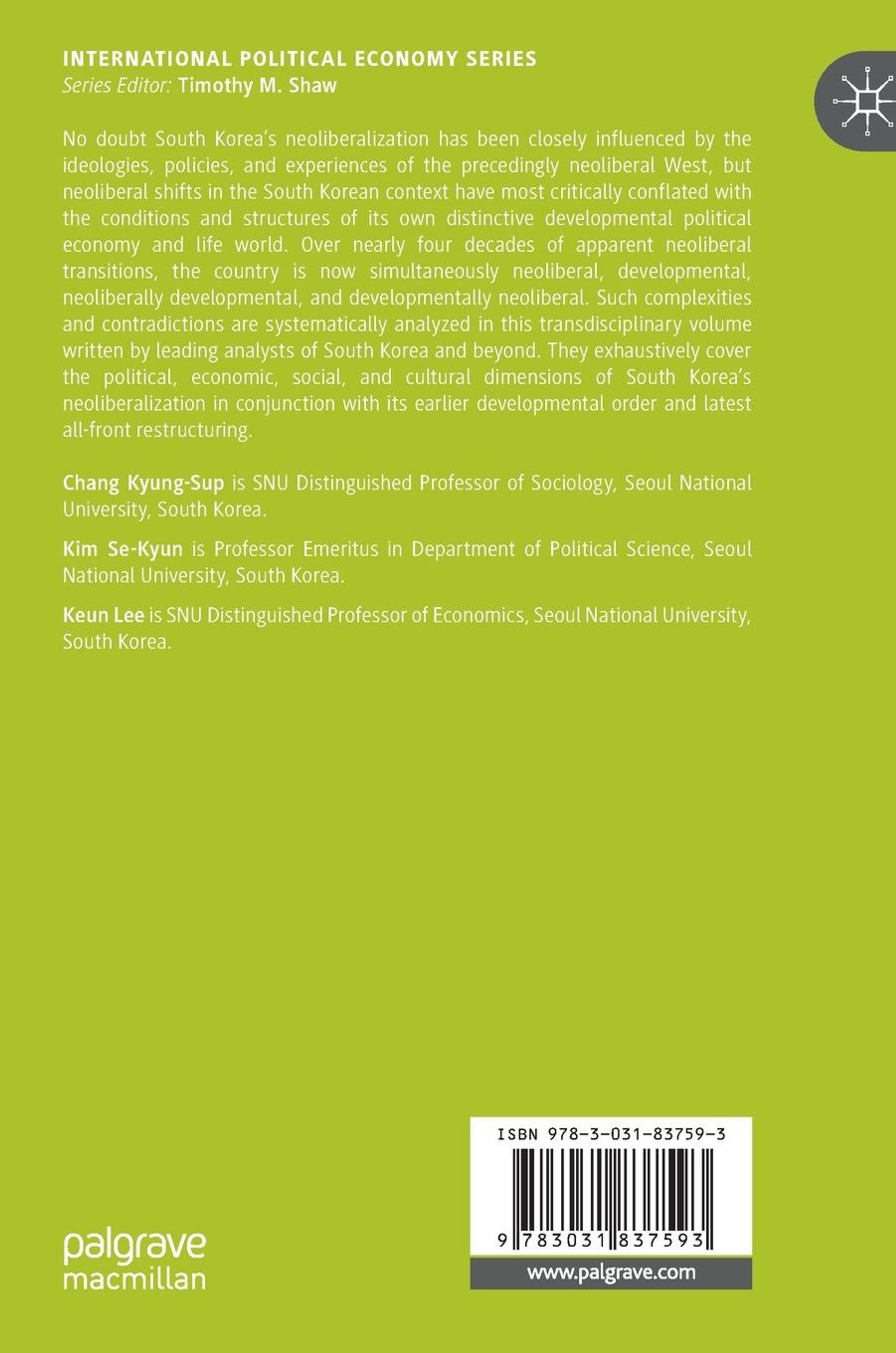No doubt South Korea's neoliberalization has been closely influenced by the ideologies, policies, and experiences of the precedingly neoliberal West, but neoliberal shifts in the South Korean context have most critically conflated with the conditions and structures of its own distinctive developmental political economy and life world. Over nearly four decades of apparent neoliberal transitions, the country is now simultaneously neoliberal, developmental, neoliberally developmental, and developmentally neoliberal. Such complexities and contradictions are systematically analyzed in this transdisciplinary volume written by leading analysts of South Korea and beyond. They exhaustively cover the political, economic, social, and cultural dimensions of South Korea's neoliberalization in conjunction with its earlier developmental order and latest all-front restructuring.