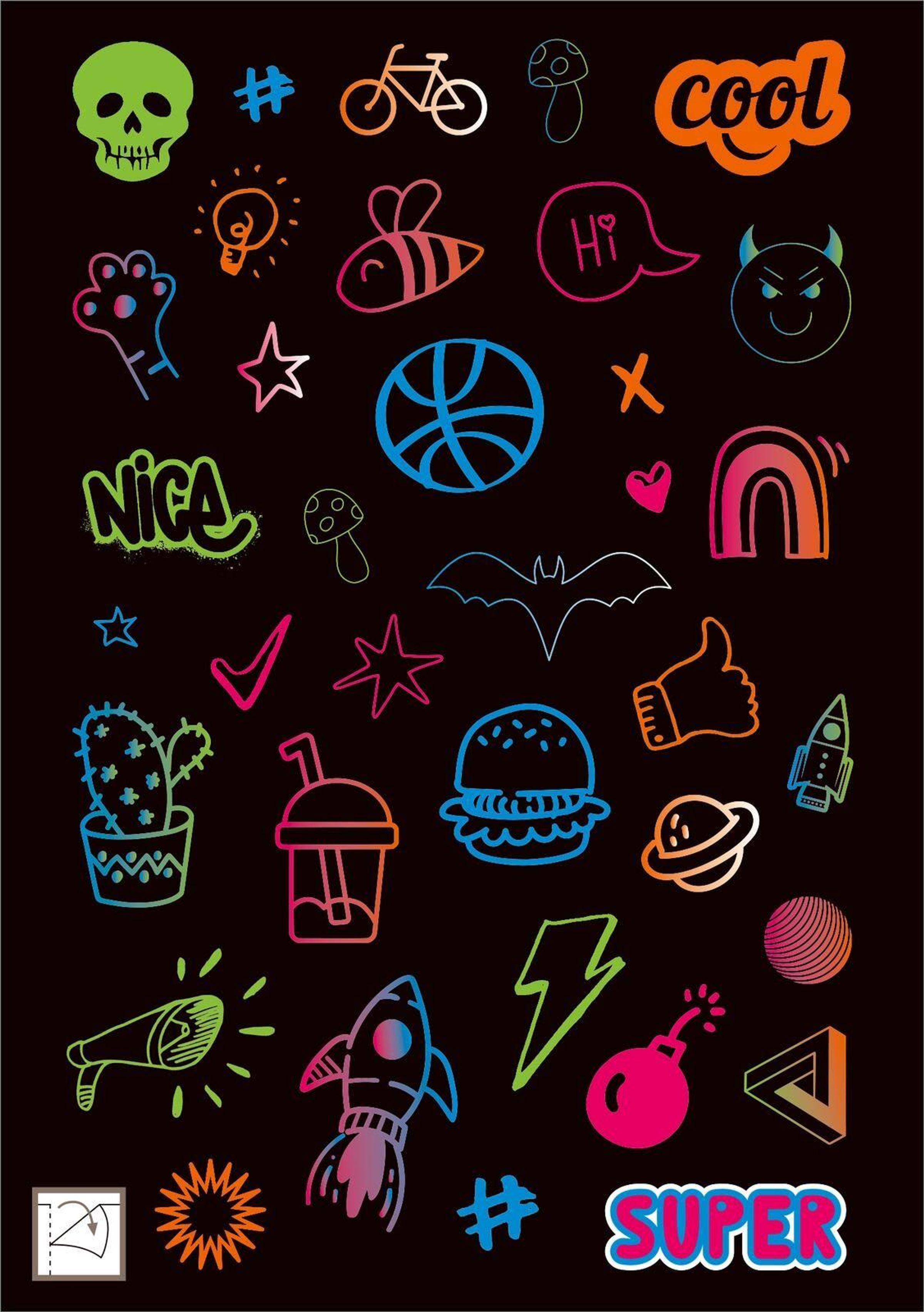 In diesem Heft findest du über 200 Sticker mit unterschiedlich Motiven zum Dekorieren mit knalligem Neon-Effekt!