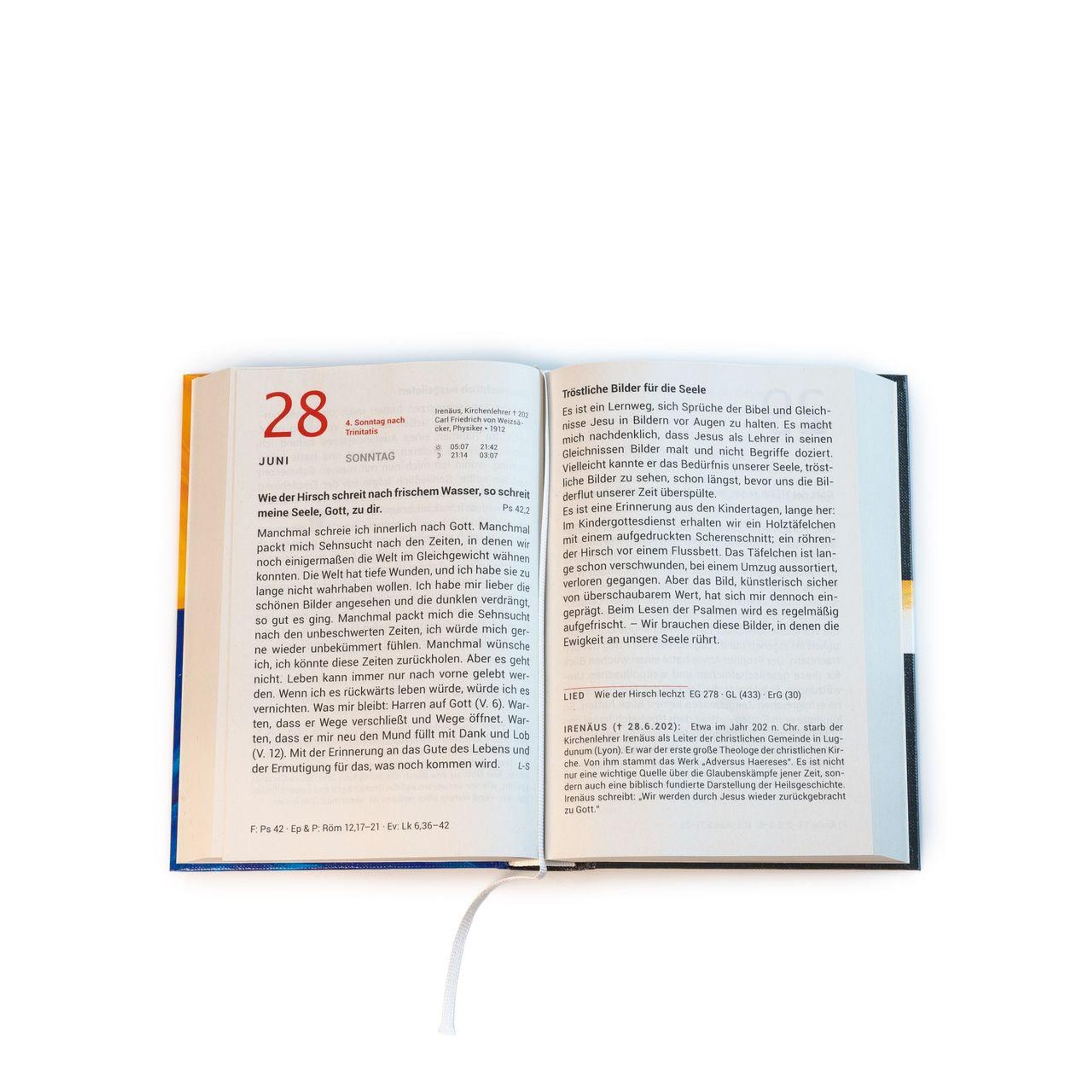 Für Leseliebhaber: Die lesefreundliche Schrift und der großzügige Satz der Großen Buchausgabe eignen sich besonders gut zum entspannten Lesen. Die feste Bindung sorgt für Schutz und ein hochwertiges Äußeres. Für jeden Tag gibt es eine großzügige Doppelseite. Auch ein Lesebändchen zum Markieren der aktuellen Seite ist enthalten.