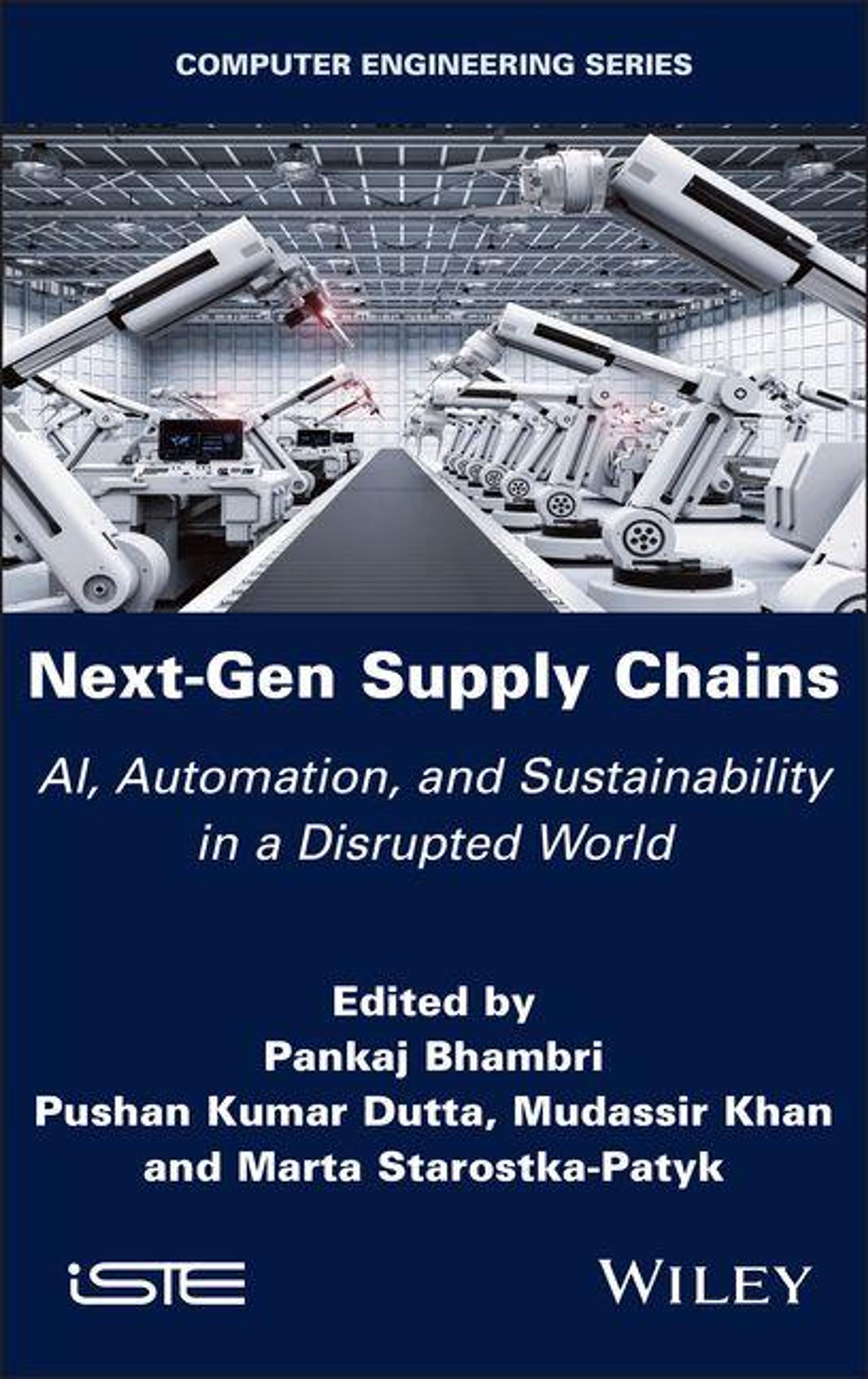 "Next-Gen Supply Chains: AI, Automation, and Sustainability in a Disrupted World" von Pankaj Bhambri et al. zeigt Fabrikroboter., Buch