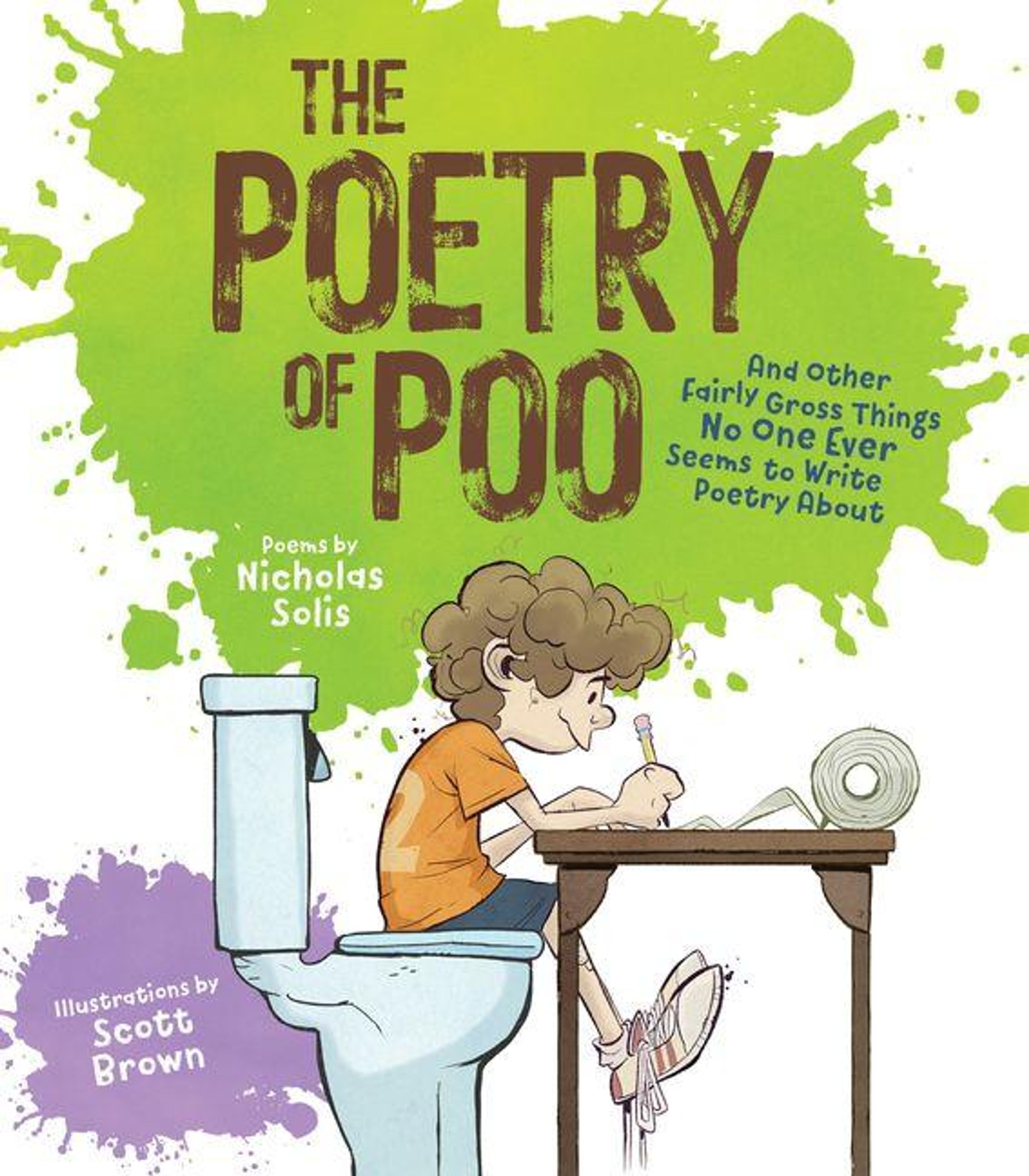 „The Poetry of Poo“: Kind schreibt auf Toilette, grüne Spritzer. Gedichte von Nicholas Solis, Illustrationen von Scott Brown., Buch