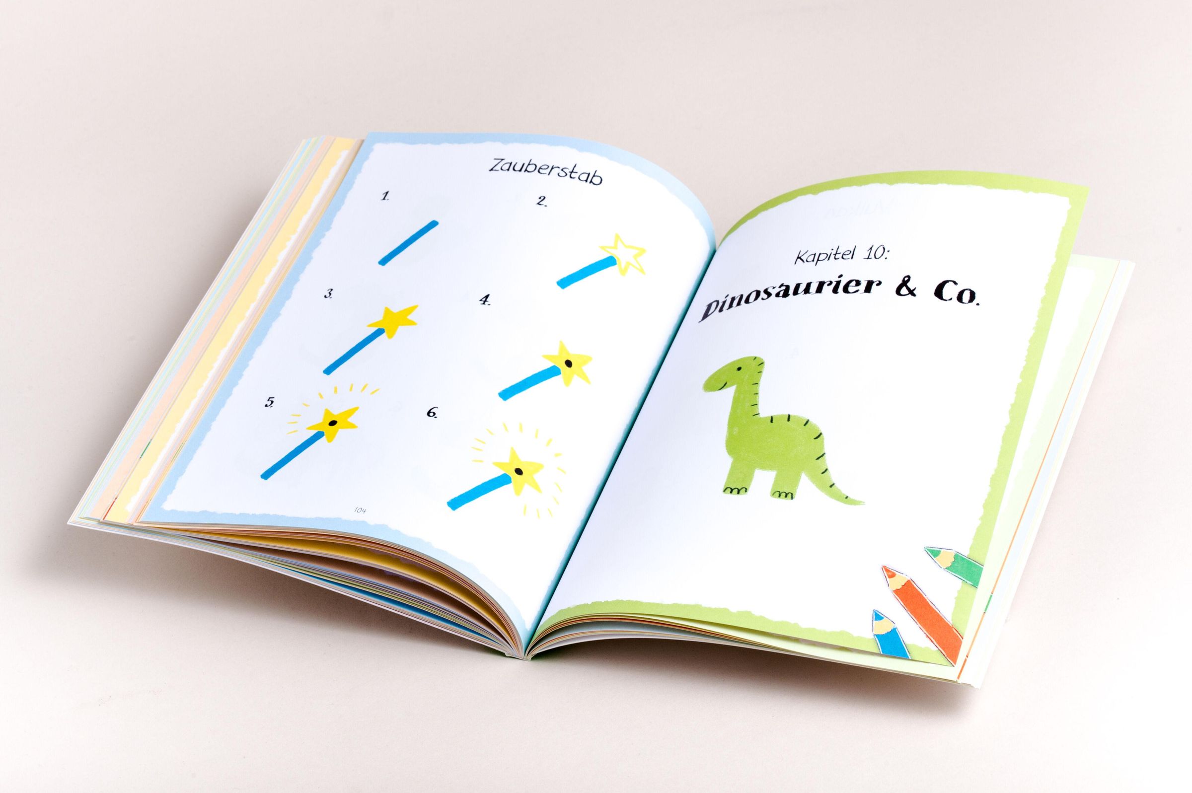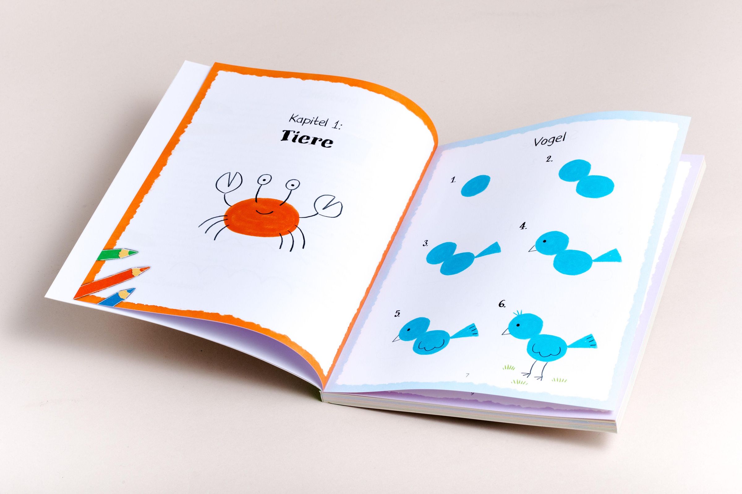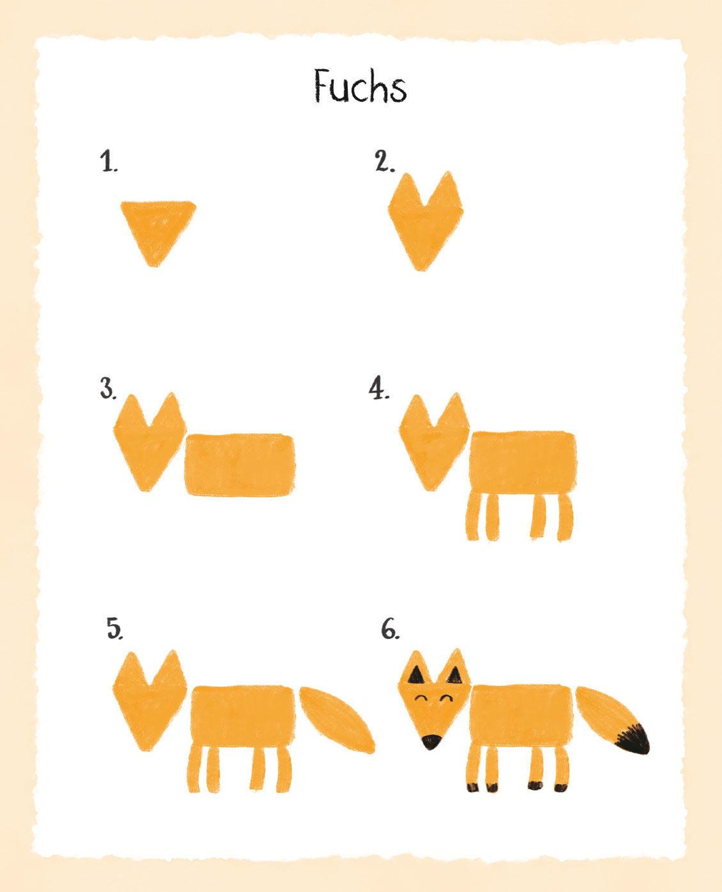 Elefant, Blume, Rakete, Schloss oder Einhorn - diese Zeichenschule für Kinder ab 4 Jahren bietet über 100 Motive zum Nachzeichnen. Das geht ganz leicht: Zunächst werden Schritt für Schritt die Grundformen der Figur gemalt, anschließend folgen die Details. So entsteht z. B. aus drei Dreiecken und einem Quadrat ein Fuchs. Der Vorteil: Beim Gestalten mit Flächen wird noch nicht ganz so viel Planung und Genauigkeit wie beim Zeichnen von Umrisslinien benötigt. Das erhöht das Erfolgserlebnis der kleinen Zeichenkünstler und den Spaß.