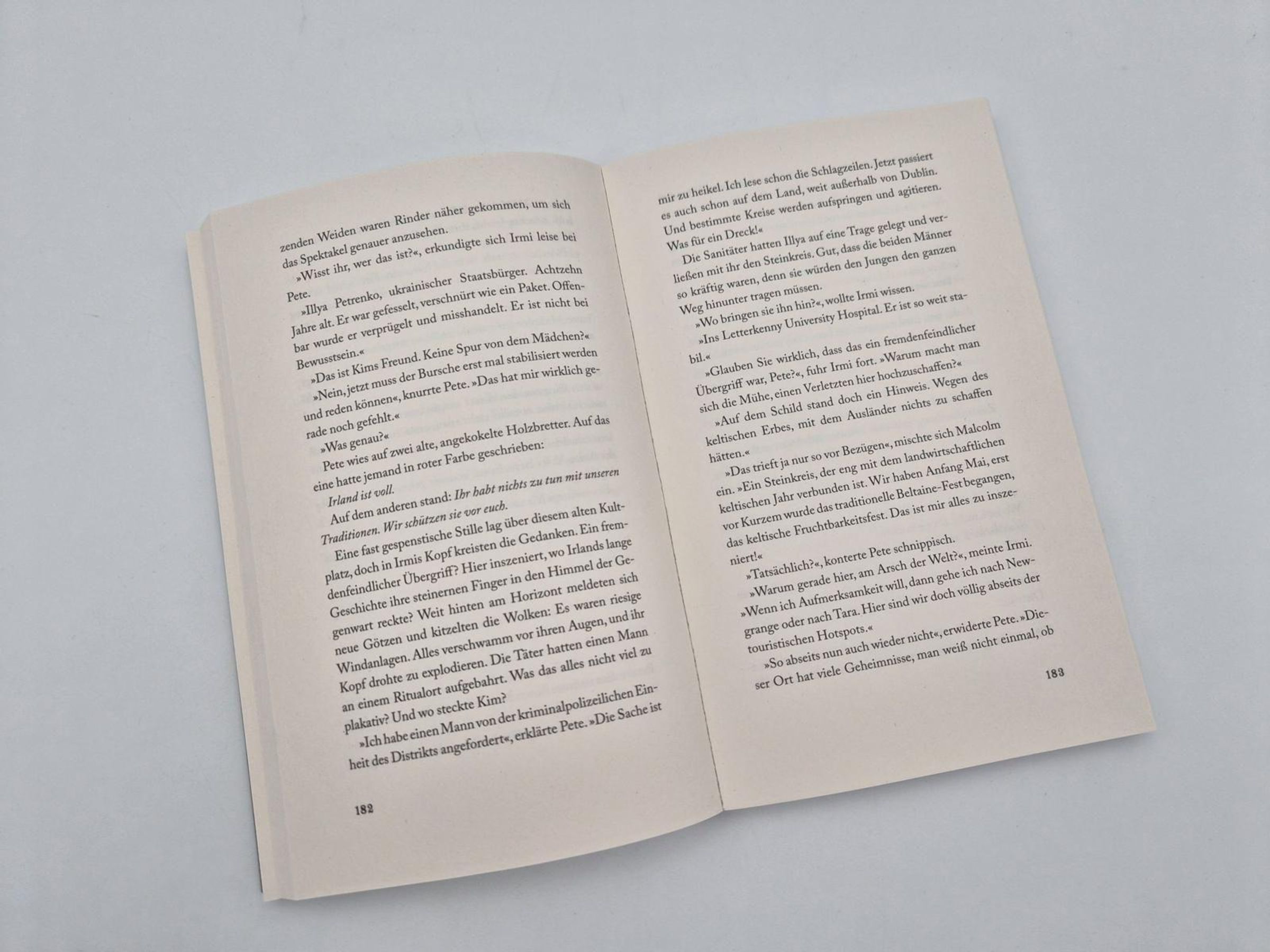 Eine junge Frau, tot in der Gischt am Fuße schroffer Klippen! Irmis Mitbewohnerin kannte Anja, das Opfer, und glaubt nicht an einen Unfall. Sie bittet Irmi um Hilfe. Diese reist widerwillig nach Irland; erst als sie erfährt, dass auch noch die Tochter der Verstorbenen spurlos verschwunden ist, erwacht ihr Ermittlergeist. Sie und Student Malcolm stoßen auf viele Verdächtige, darunter die Schwiegereltern und skrupellose Greyhound-Züchter. Und was hat ein schwer verletzter Flüchtling mitten in einem Steinkreis damit zu tun? Auch Anjas Lebensstil könnte Anstoß erregt haben: Sie arbeitete remote bei einer Pharmafirma und lebte in einem Luxuscamper am Strand. Der komplexe Fall lässt Irmi nicht mehr los.
