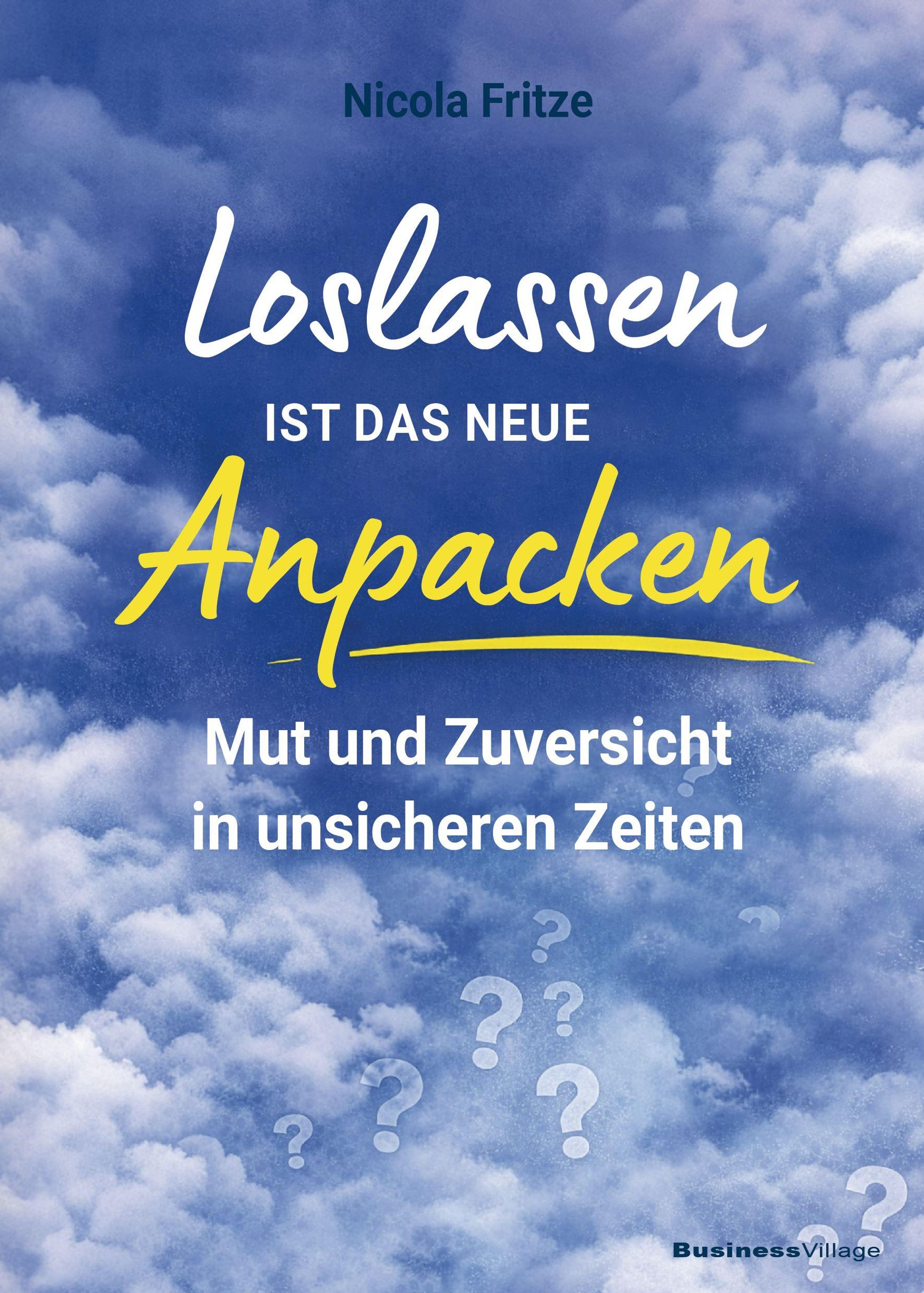 "Loslassen ist das neue Anpacken. Mut und Zuversicht in unsicheren Zeiten." Wolkenhintergrund mit Fragezeichen., Buch