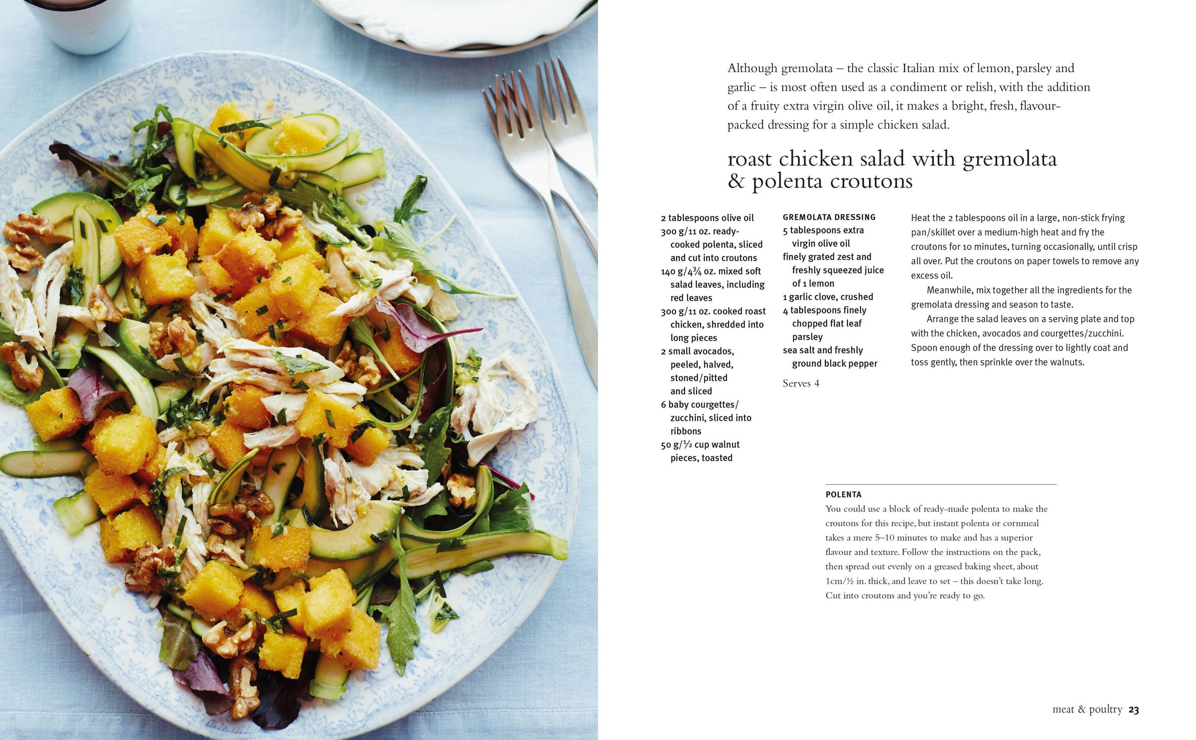 This vibrant book showcases beautifully balanced salads, with chapters covering Meat and Poultry, Fish and Shellfish, Dairy, Grains, Beans and Pulses, and Simply Fruits and Vegetables. Salads are ideal for light meal s, and there are plenty of ideas here that can be made in advance and transported to the office or school . The book also contains midweek ideas that will please the whole family, as well as some impressive dishes that wouldn't be out of place at a dinner party.