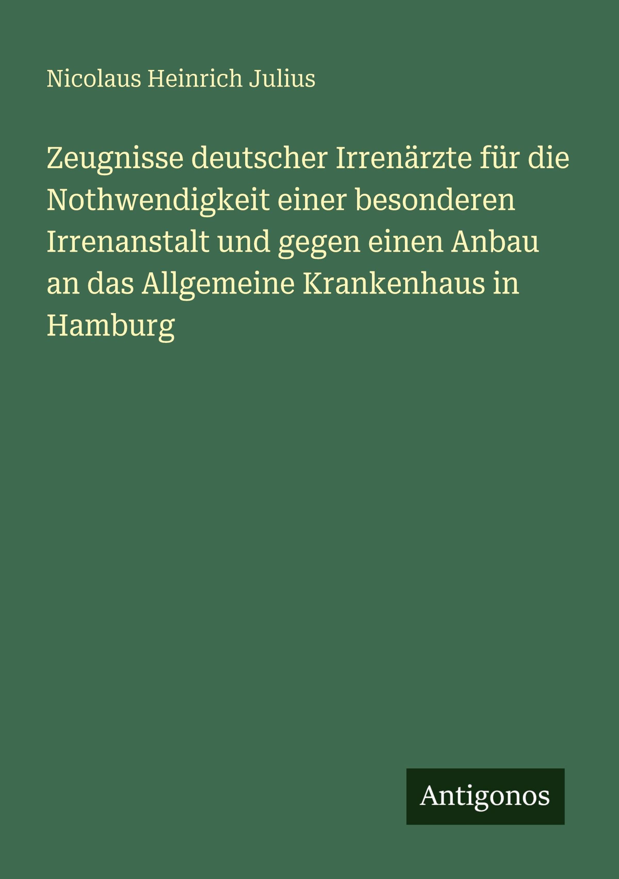 Zeugnisse deutscher Irrenärzte für die Nothwendigkeit einer besonderen Irrenanstalt und gegen einen Anbau an das Allgemeine Krankenhaus in Hamburg