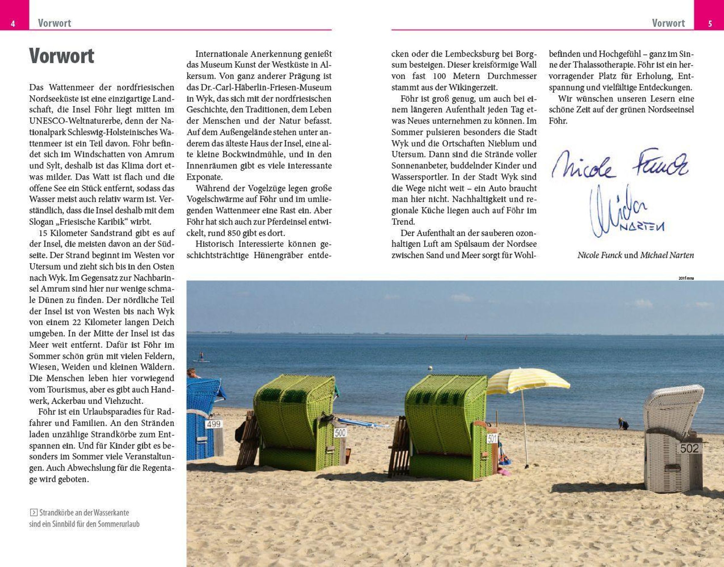 Ob zu Fuß, mit Fahrrad oder Boot:¿Die¿Autoren nehmen die Leser mit zu einer Erkundungstour über die kleine Nordseeinsel, geben ausführliche¿Beschreibungen aller sehenswerten Orte und laden zu Inselrundfahrten, Ausflügen zu Seehundbänken oder einem Besuch der Nachbarinseln und den Halligen Hooge, Langeneß und Gröde ein. Und sie empfehlen die Insel gleichsam als eine Therapie für den überlasteten modernen Menschen: "Die bereichernden Eindrücke der¿Natur erfreuen das Herz und die Seele kommt zur Ruhe. Föhr ist ohne Zweifel ein hervorragender Platz für Erholung,¿Entspannung und vielfältige Entdeckungen."