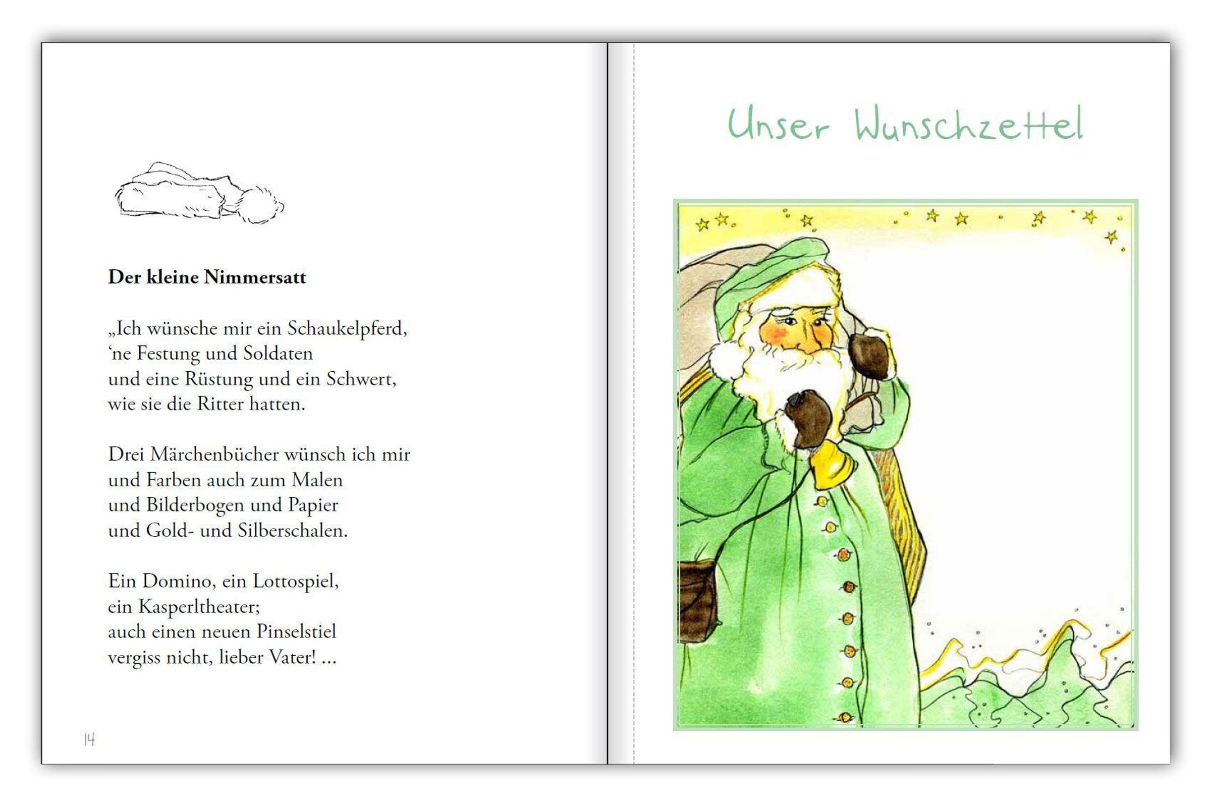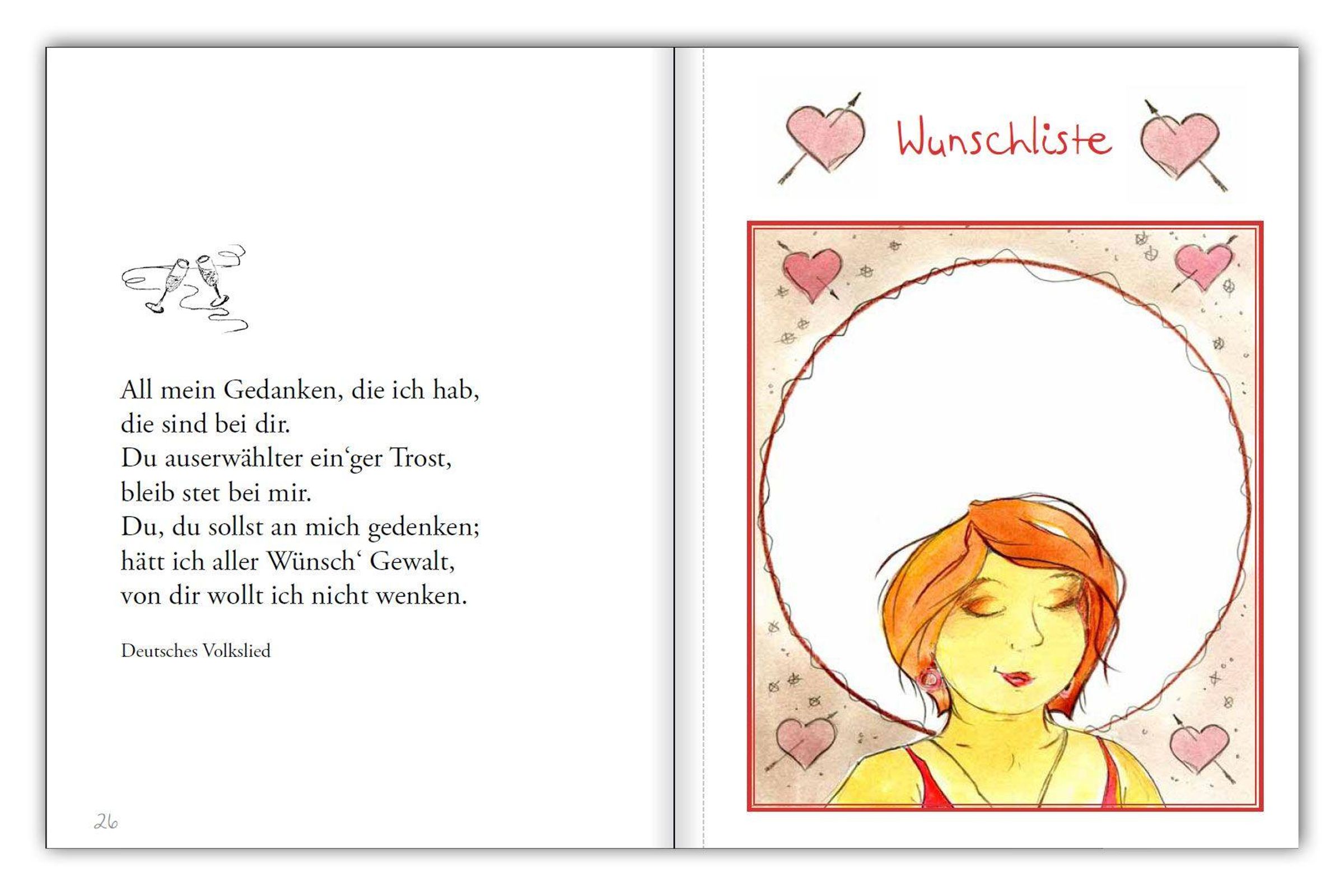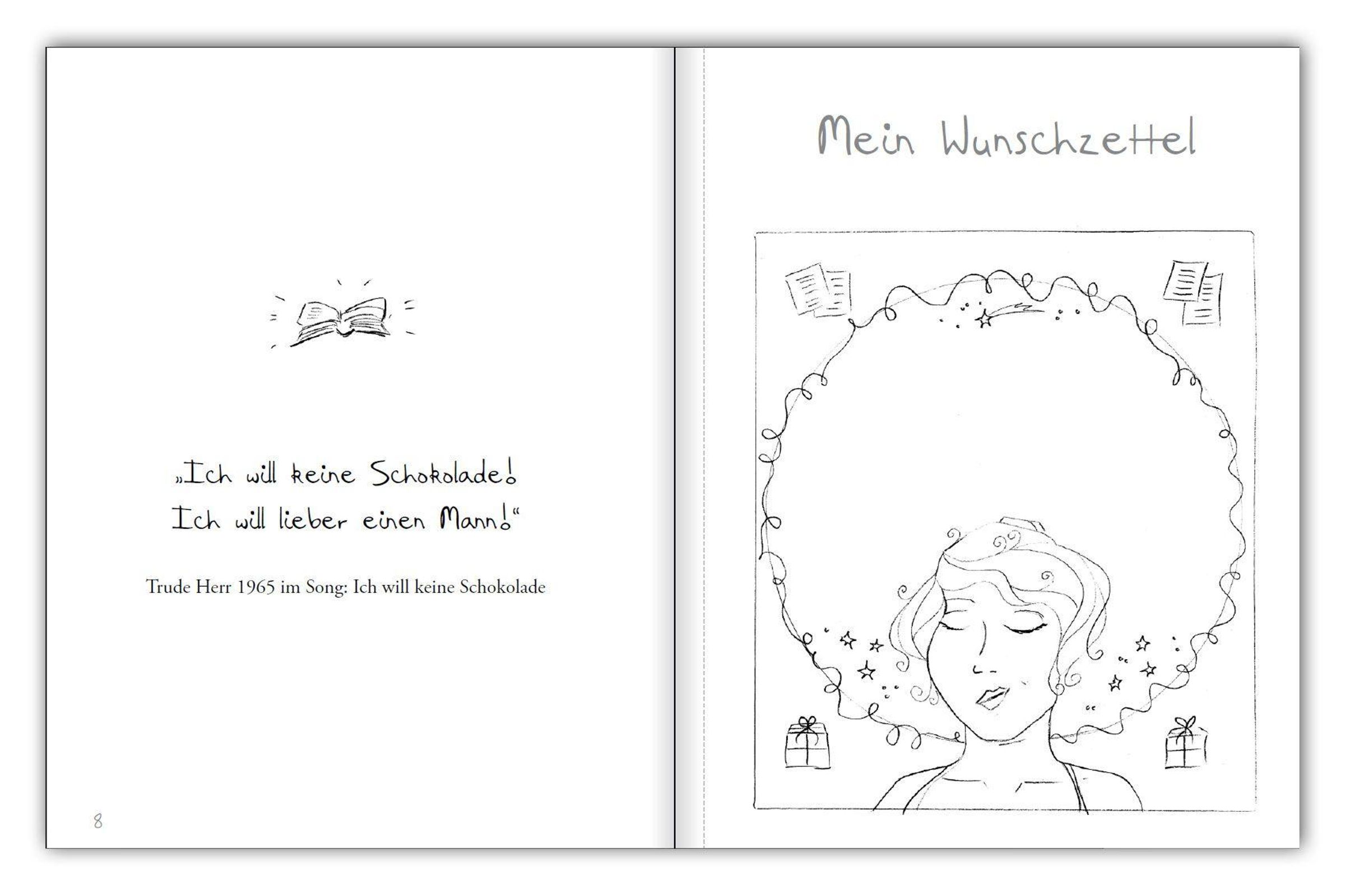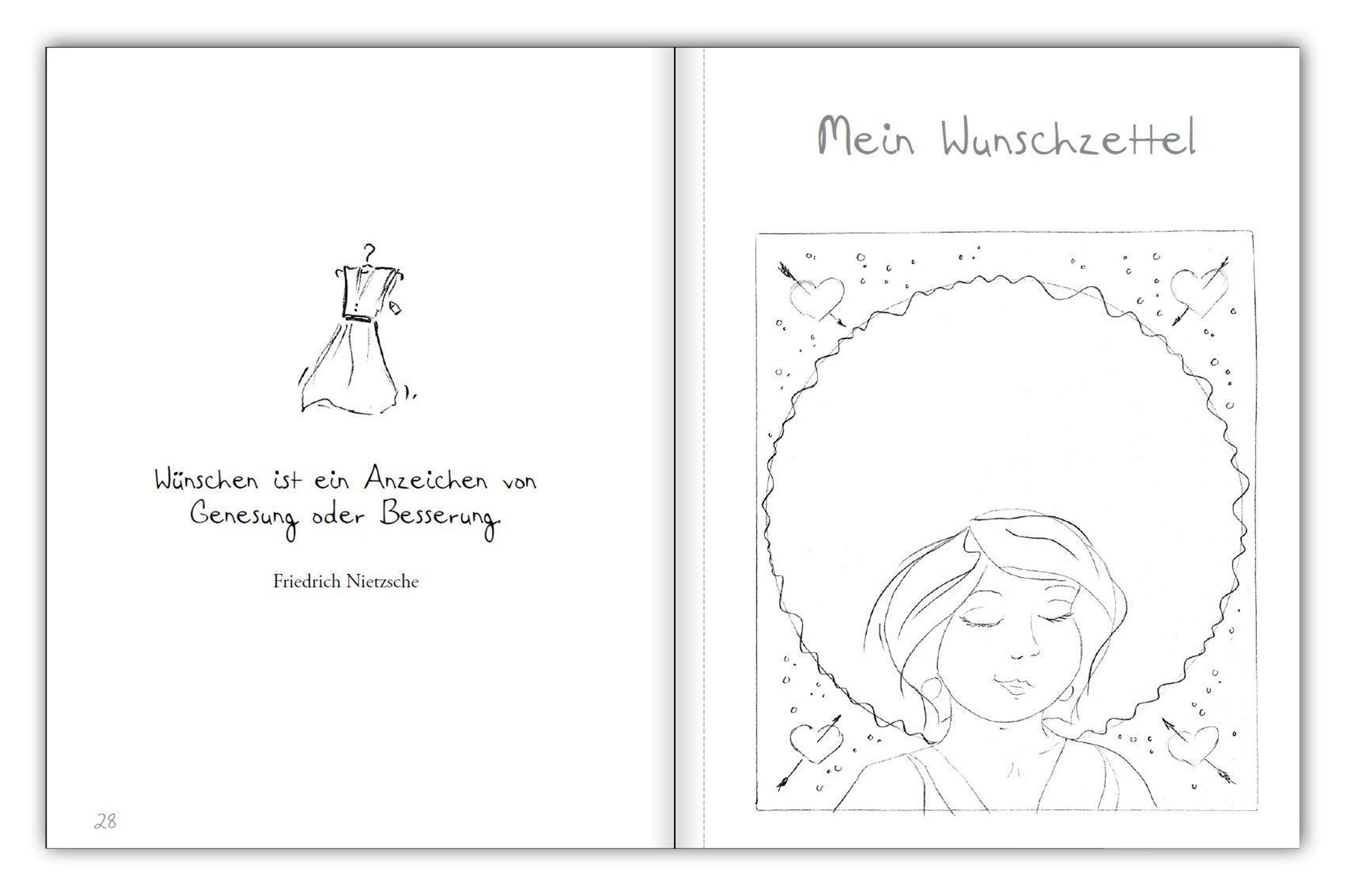 Wünsch dir was! Das Wunschzettelbuch versammelt alle deine Wünsche. Du kannst es füllen und beschreiben mit deinen Träumen und Ideen, ausmalen und weiter gestalten, wie es dir gefällt, oder es mit deinen Freundinnen und deiner Familie teilen. Deine Lieben sollen deine Wünsche nicht vergessen? Dann gib ihnen zur Erinnerung einen Wunschzettel mit. Dein Partner möge an das richtige Geschenk für dich denken? Ein stilvoller Wunschzettel erinnert daran. Ein Wünsch-Dir-Was-Nachmittag mit deinen Freundinnen? Na klar! Jeder, der Ideen hat, hat auch Wünsche. Das Wunschzettelbuch kann deine Träume und Hoffnungen als Sammelband bewahren. Lass deiner Phantasie freien Lauf und wünsch dir was! Zusätzlich zu den 42 wunderschönen, in Nicole Schäuflers kleinem Atelier entstandenen Aquarellen und Zeichnungen findest du auf der Rückseite jedes Wunschzettels liebevoll ausgewählte Wunsch-Texte: Gedichte, Zitate und Filmszenen, die Wünsche und das Wünschen zum Inhalt haben. Sie bringen die vielen Facetten unserer Wünsche zum Ausdruck und belegen, dass Wünsche und ihre Erfüllung tiefe Sehnsüchte in uns stillen. "Nichts ist erquickender, als von unsern Wünschen zu reden, wenn sie schon in Erfüllung gehen." (Novalis) "Ich will genau das, was SIE hatte!" (Die Frau am Nachbartisch im Restaurant im Film "Harry und Sally" von Rob Reiner, U. S.A. 1989) "Eigentlich ist alles nichts, heute hält's, und morgen bricht's, hin stirbt alles, ganz geringe wird der Wert der ird'schen Dinge; doch wie tief herabgestimmt auch das Wünschen Abschied nimmt, immer klingt es noch daneben: Ja, das möcht' ich noch erleben." (Theodor Fontane) "Ich bin zu alt, um nur zu spielen, zu jung, um ohne Wunsch zu sein." (Faust in Faust I, Johann Wolfgang von Goethe)