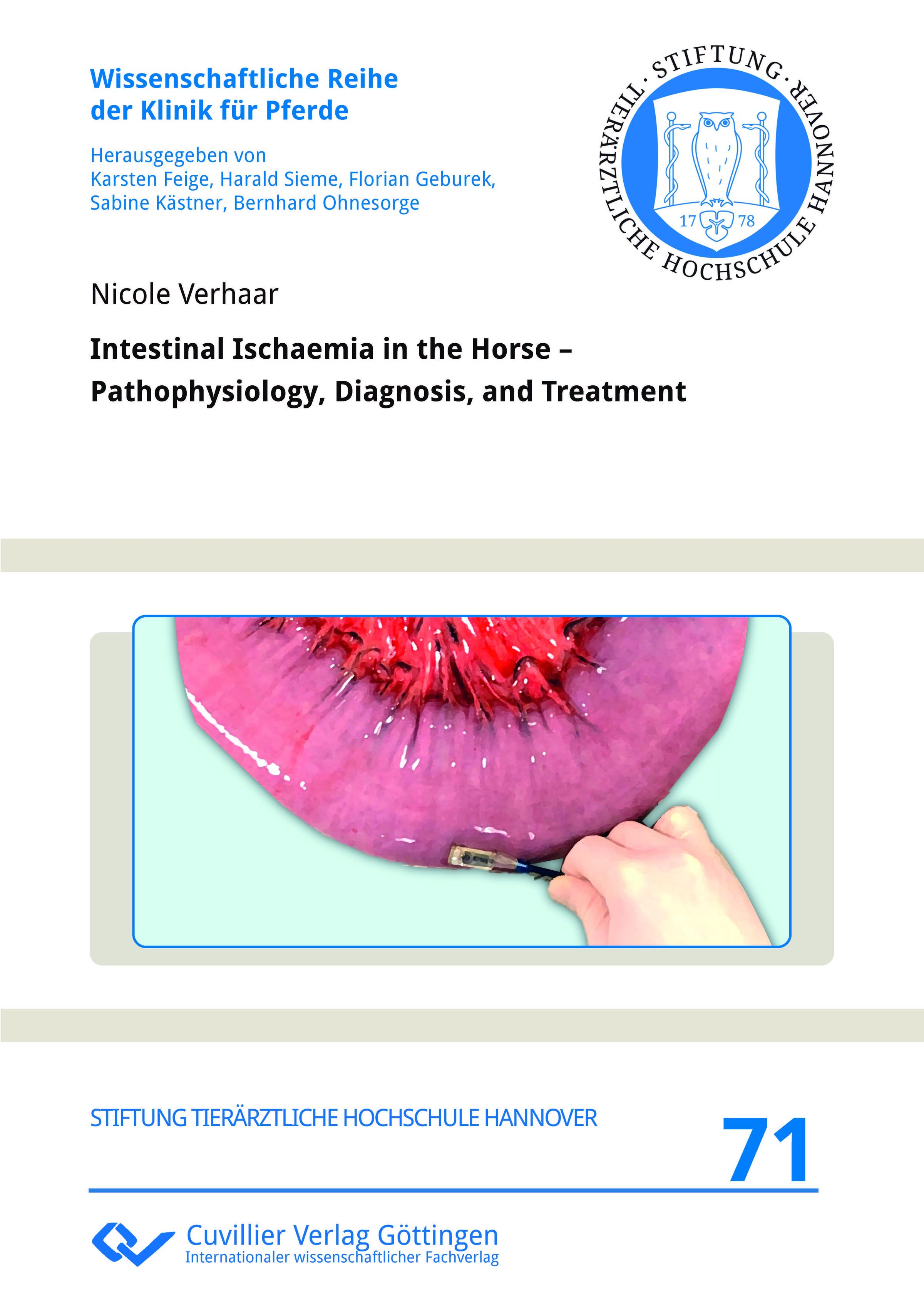 Therefore, this work aimed to contribute to the evidence-based diagnosis and treatment of intestinal ischaemia in horses. It provides novel insights into the mechanisms of injury and the degree of ischaemia in naturally occurring lesions. Additionally, intraoperative assessment of intestinal viability is investigated, including the use of real-time ancillary diagnostics and optimised biopsy techniques. Concerning adjunctive treatments, various pharmacological agents have been assessed for their potential in managing intestinal ischaemia.