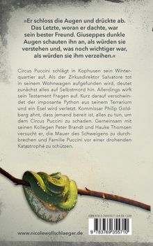 Circus Puccini schlägt in Kophusen sein Winterquartier auf. Als der Zirkusdirektor Salvatore tot in seinem Wohnwagen aufgefunden wird, deutet zunächst alles auf Selbstmord hin. Allerdings wirft sein Testament Fragen auf. Kurz darauf verschwindet der imposante Python aus seinem Terrarium und ein Esel wird verletzt. Kommissar Philip Goldberg ahnt, dass jemand bereit ist, alles zu tun, um dem Circus Puccini zu schaden. Gemeinsam mit seinen Kollegen Peter Brandt und Hauke Thomsen versucht er, die Mauer des Schweigens zu durchbrechen und Familie Puccini vor einer drohenden Katastrophe zu schützen.