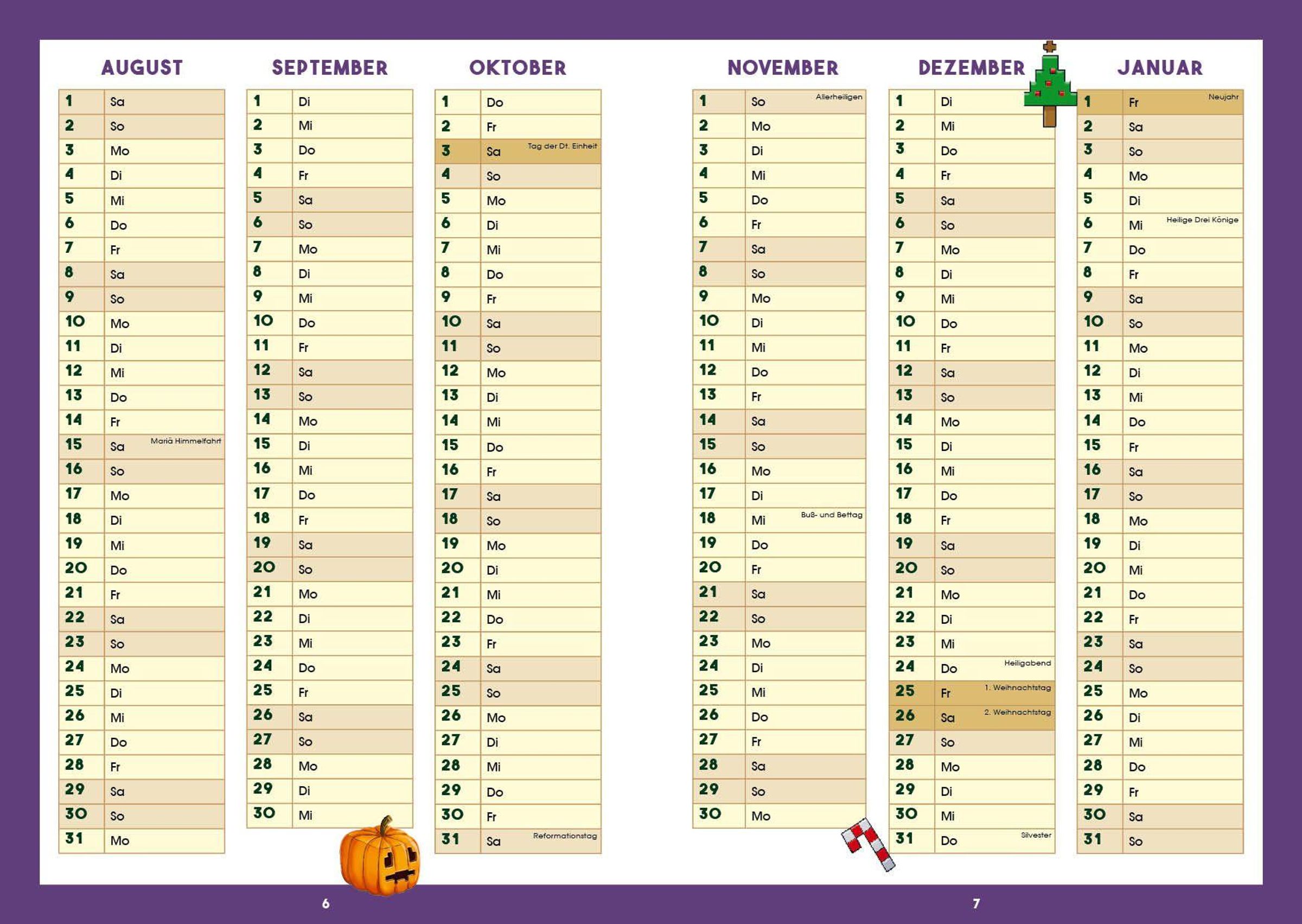 - Praktische Wochen- und Monatsübersichten und Listen erleichtern die Organisation