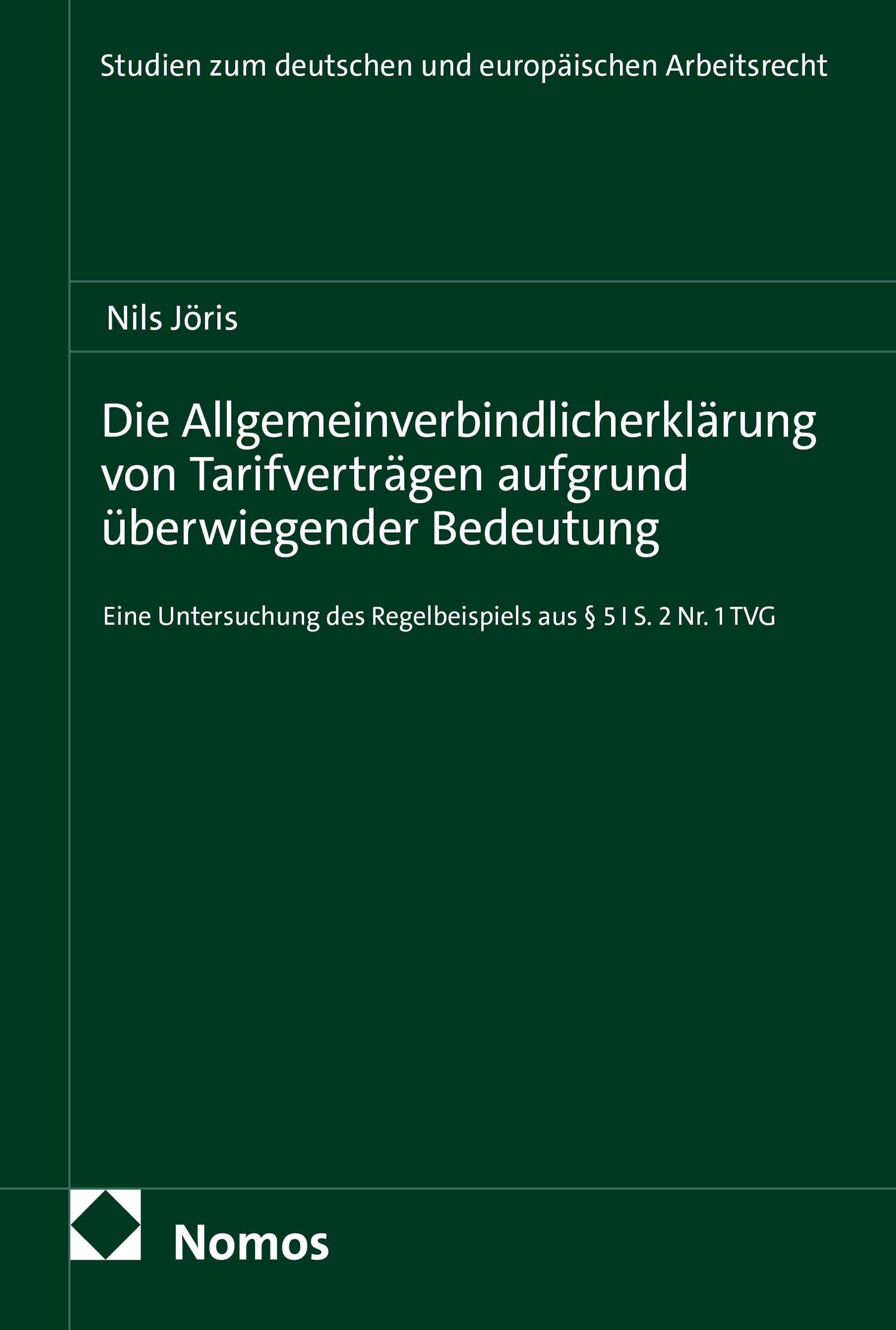 Nils Jöris: Die Allgemeinverbindlicherklärung von Tarifverträgen aufgrund überwiegender Bedeutung, Kartoniert / Broschiert