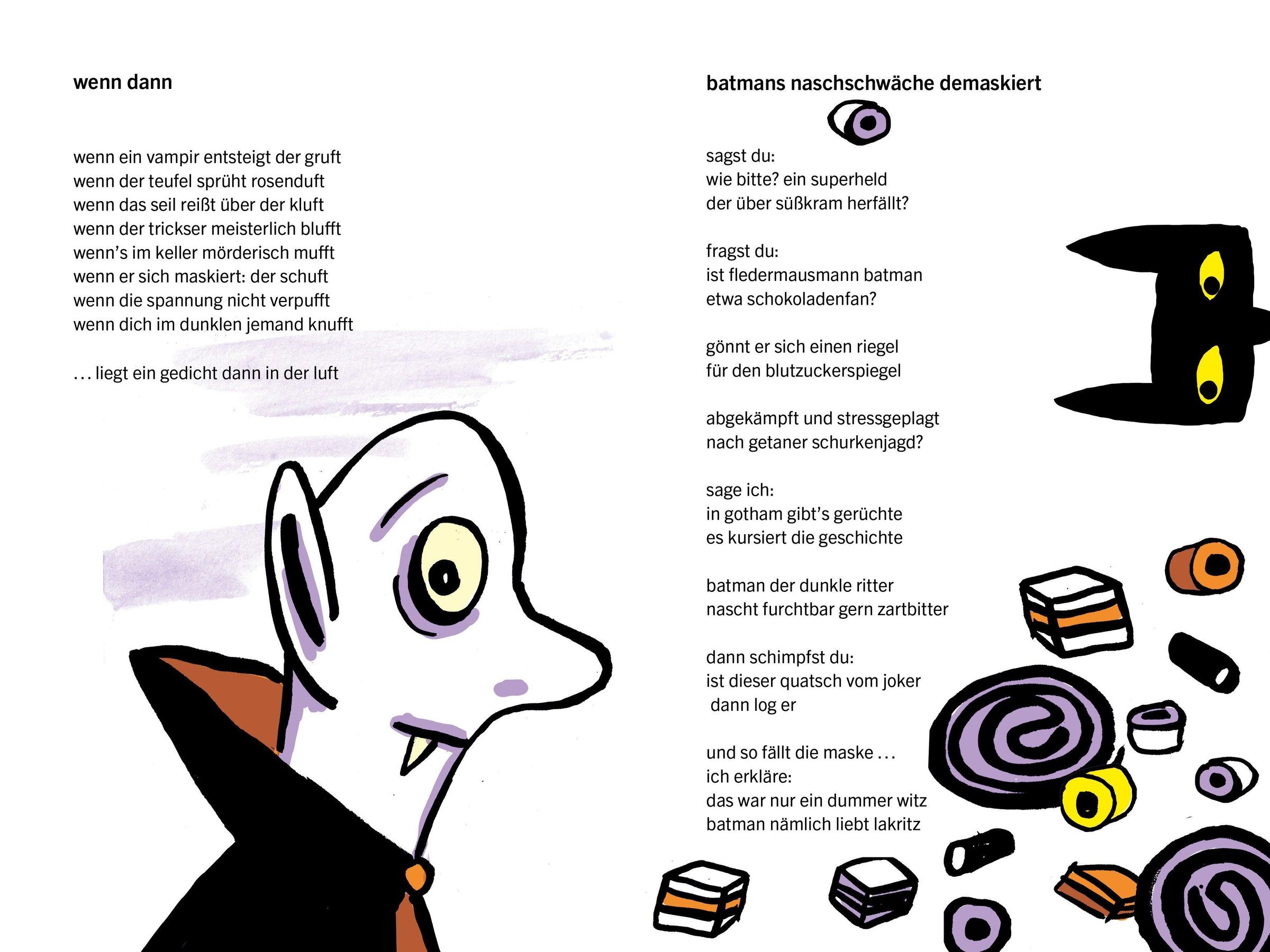 Abenteuerliches, Unheimliches und Aufregendes lauert überall - wer weiß, was man fin-det, wenn man sucht, vor allem in fremden Welten, bei der Begegnung mit echten Schur-kinnen und Schurken allemal, in der (ersehnten) Zweisamkeit ebenso und, ja, auch beim Dichten. In bewährter unkonventioneller Art widmet sich Nils Mohl in seiner neuen Gedichtsamm-lung allem, was einen gewissen Nervenkitzel in sich trägt. Das kann im alltäglichen Leben verortet sein, aber auch in Fantasie und Fiktion, etwa bei einem genaueren Blick auf Bat-mans Vorliebe für Süßkram. Ein Leck im Boot auf hoher See erhöht den Blutdruck ebenso wie das Warten auf Draculas Erwachen. In sechs Kapitel geteilt führt uns der Hamburger Lyriker durch die Stationen seiner Ge-dichte wie durch einen Jahrmarkt - schreiend, grell und blinkend an den einen Stellen, ruhig, verwunschen und versteckt an den anderen. Passende, kleine Rätsel inklusive. Die Leipziger Künstlerin Halina Kirschner findet mit starkem Strich frech-witzige Illustratio-nen zu den Texten und gibt all dem Spektakel einen wunderbaren bildhaften Raum.