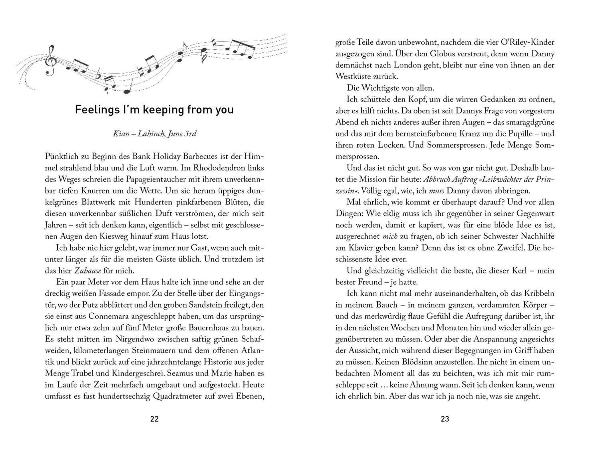 Schon seit Jahren schlägt Leias Herz für Kian, den besten Freund ihres großen Bruders Danny. Und auch Kian sieht in Leia heimlich mehr als die nervige kleine Schwester seines Kumpels. Bisher scheute der charmante Musiker vor festen Beziehungen allerdings stets zurück, weshalb Danny ihm einst das Versprechen abnahm, nie etwas mit seiner Schwester anzufangen. Ein Pakt, an den sich Kian eisern hält. Bis jetzt. Denn als Danny für einen Sommer ins Ausland geht, bittet er ausgerechnet Kian, ein Auge auf Leia zu haben und ihr bei ihrem Traum zu helfen, Pianistin zu werden. Bei den gemeinsamen Nachhilfestunden am Klavier liegt mehr in der Luft als Musik. Wie lange kann Kian sein Versprechen halten, wenn jede von Leias Noten sein Herz berührt?