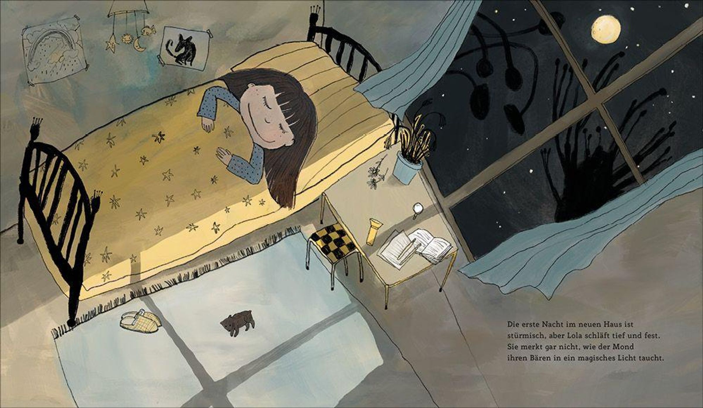 Lola ist neu in der Stadt und noch ein bisschen schüchtern. Doch in einer magischen Nacht passiert das Wunderbare - ihr Kuscheltier verwandelt sich in einen lebendigen Bären. Die beiden klettern aus dem Fenster und ziehen los in den wilden Wald hinter dem Haus.