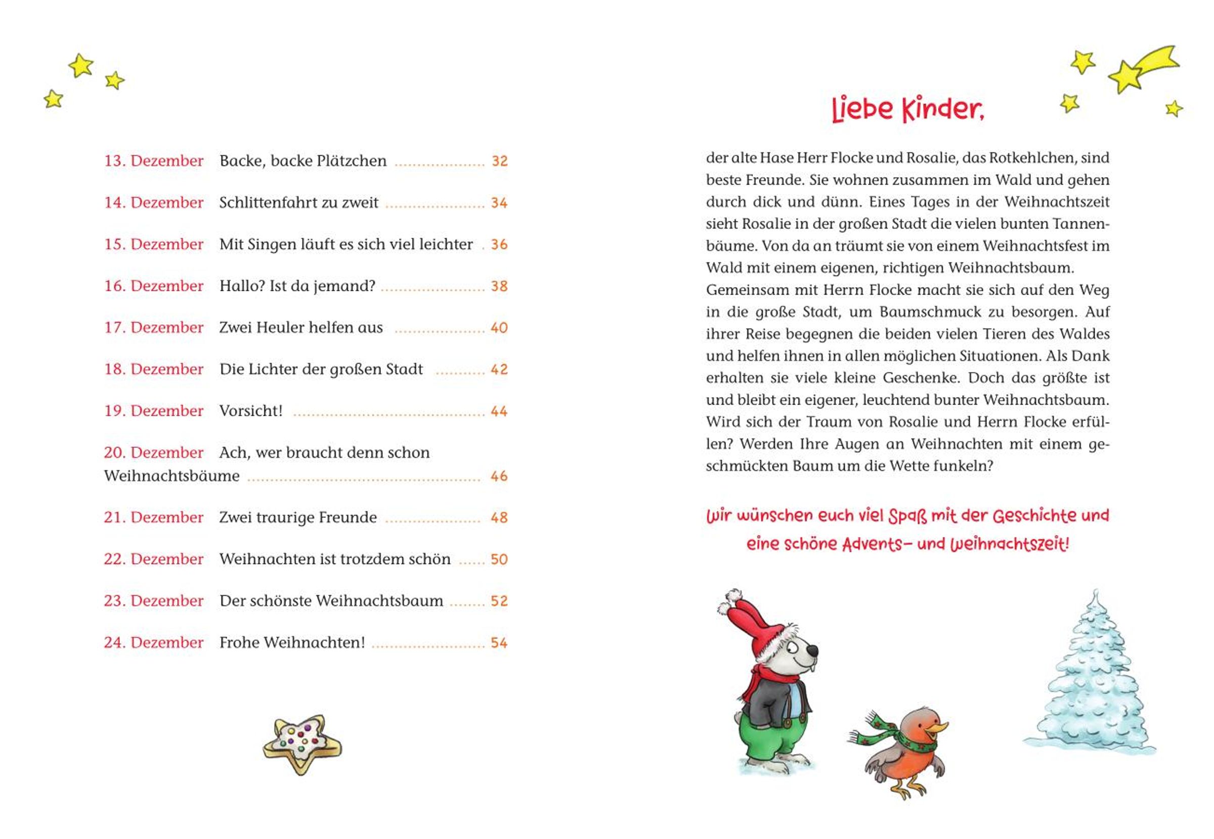 Auf dem Weg in die Stadt treffen die beiden Freunde eine Menge Tiere und helfen wo sie nur können. Ob Rosalie und Herr Flocke es schaffen und rechtzeitig zum Weihnachtfest einen echten geschmückten Weihnachtsbaum haben?
