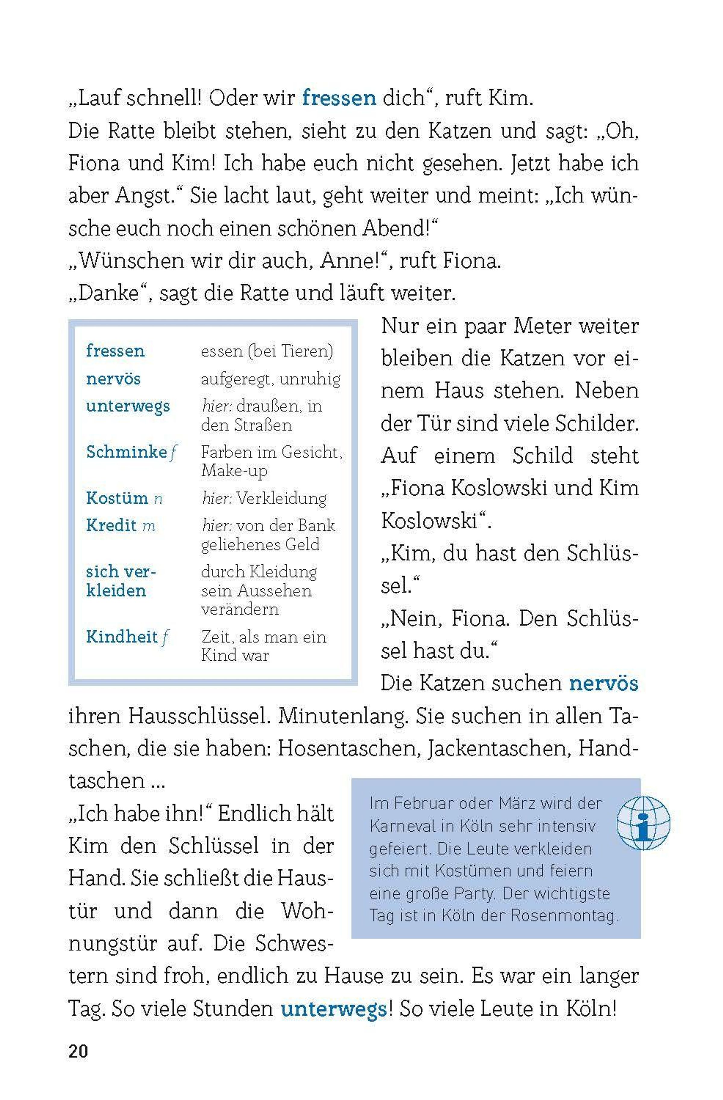 Sie lernen gerade Deutsch und möchten Ihre Sprachkenntnisse verbessern oder vorhandenes Wissen auffrischen? Sie wollen dabei unterhalten werden und Wissenswertes zu Land und Sprache erfahren? Sie lieben fesselnde Geschichten und wollen authentische Texte von muttersprachlichen Autor*innen lesen? Dann sind unsere Sprachwelten Kurzgeschichten genau das Richtige für Sie. In "Zwei Katzen in Köln" erwarten Sie vier kurzweilige Geschichten, die speziell für Anfänger*innen ab dem Niveau A1 geschrieben wurden. Mit dem einzigartigen Circon Lernkonzept erwerben Sie spielerisch Sprachkompetenzen. Tauchen Sie in die deutsche Sprachwelt ein und verbessern Sie ganz nebenbei Ihren Deutsch-Wortschatz und vertiefen Sie Ihre Grammatikkenntnisse. Es gibt auch viel Wissenswertes rund um Land und Leute zu entdecken. Die speziell konzipierten, thematischen Übungen verbinden sich mit unterhaltsamer Lektüre und sorgen schnell für Erfolgserlebnisse. So geht Sprachenlernen!