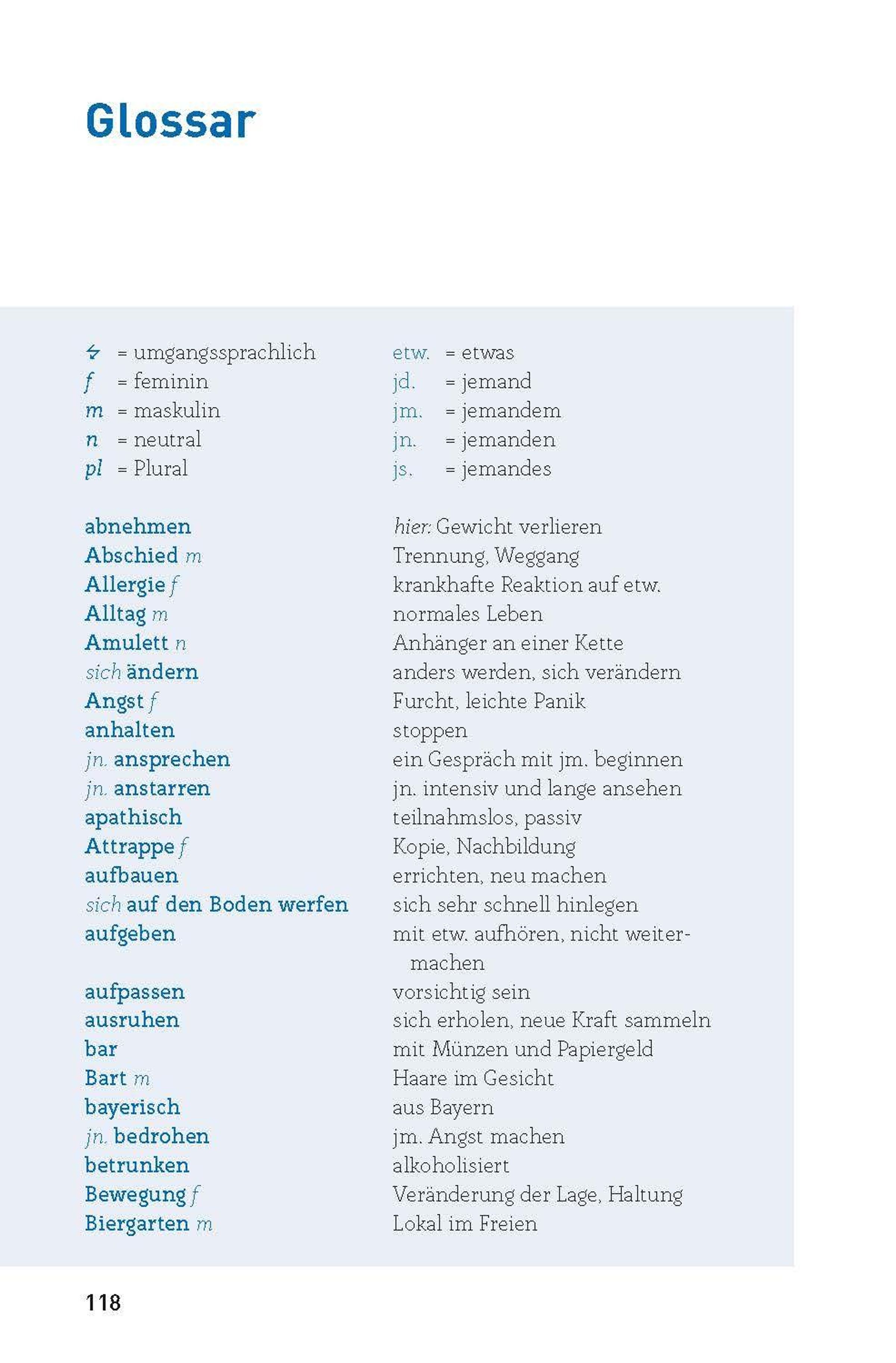 - Umfangreiches Glossar: Das alphabetische Glossar am Ende des Buches ermöglicht es, die Wörter aus allen Texten auch nachträglich nachzuschlagen.