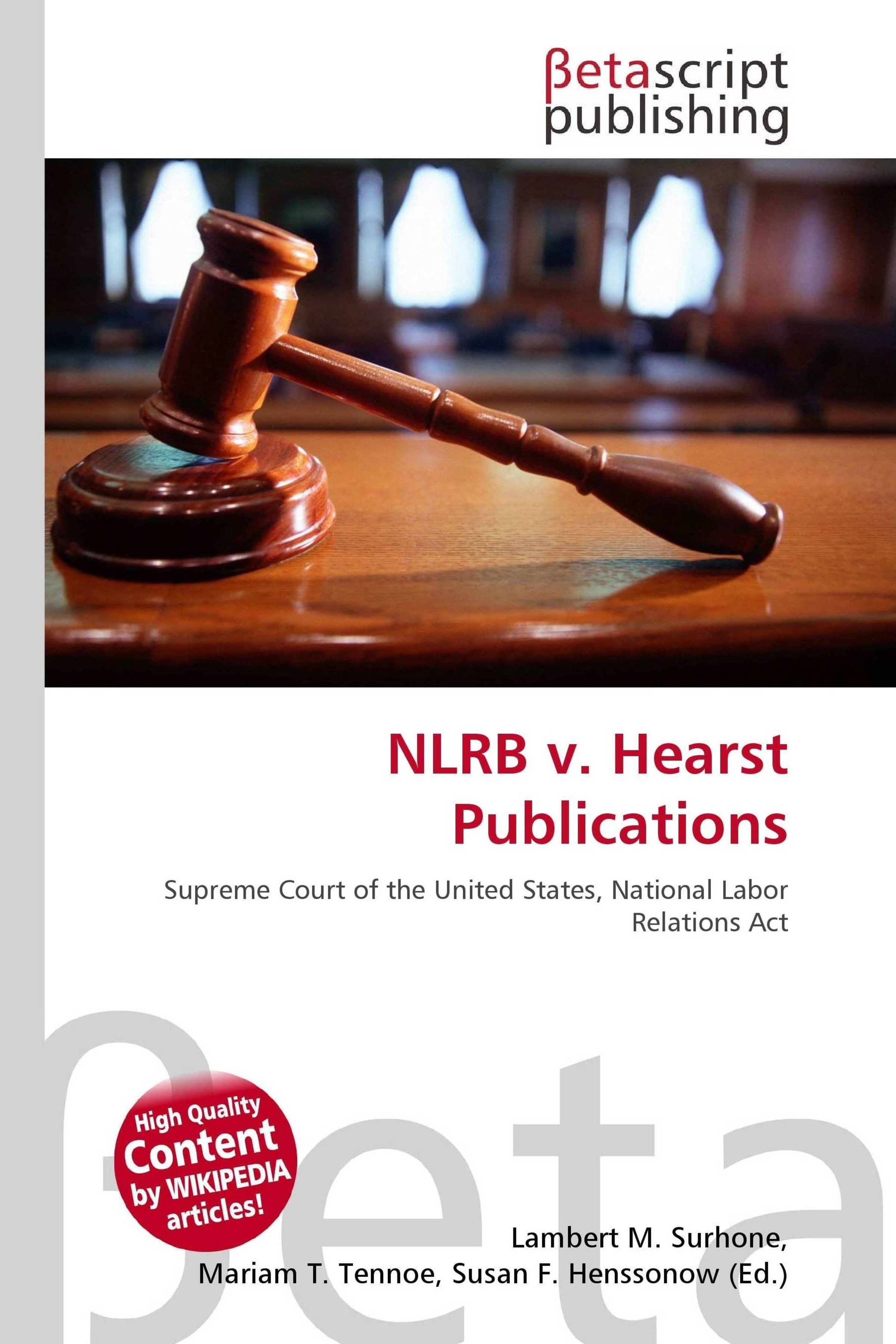 Please note that the content of this book primarily consists of articles available from Wikipedia or other free sources online. Hearst Publications, the publishers of four daily Los Angeles newspapers, refused to bargain collectively with their newsboys. The newsboys filed petitions with the National Labor Relations Board for certification as a local union. The NLRB found that the newsboys were full-time employees within the meaning of the National Labor Relations Act and ordered Hearst to cease violating the Act and bargain with the newsboys. The United States Court of Appeals for the Ninth Circuit refused to enforce the order, reasoning that the newsboys were independent contractors, rather than employees.