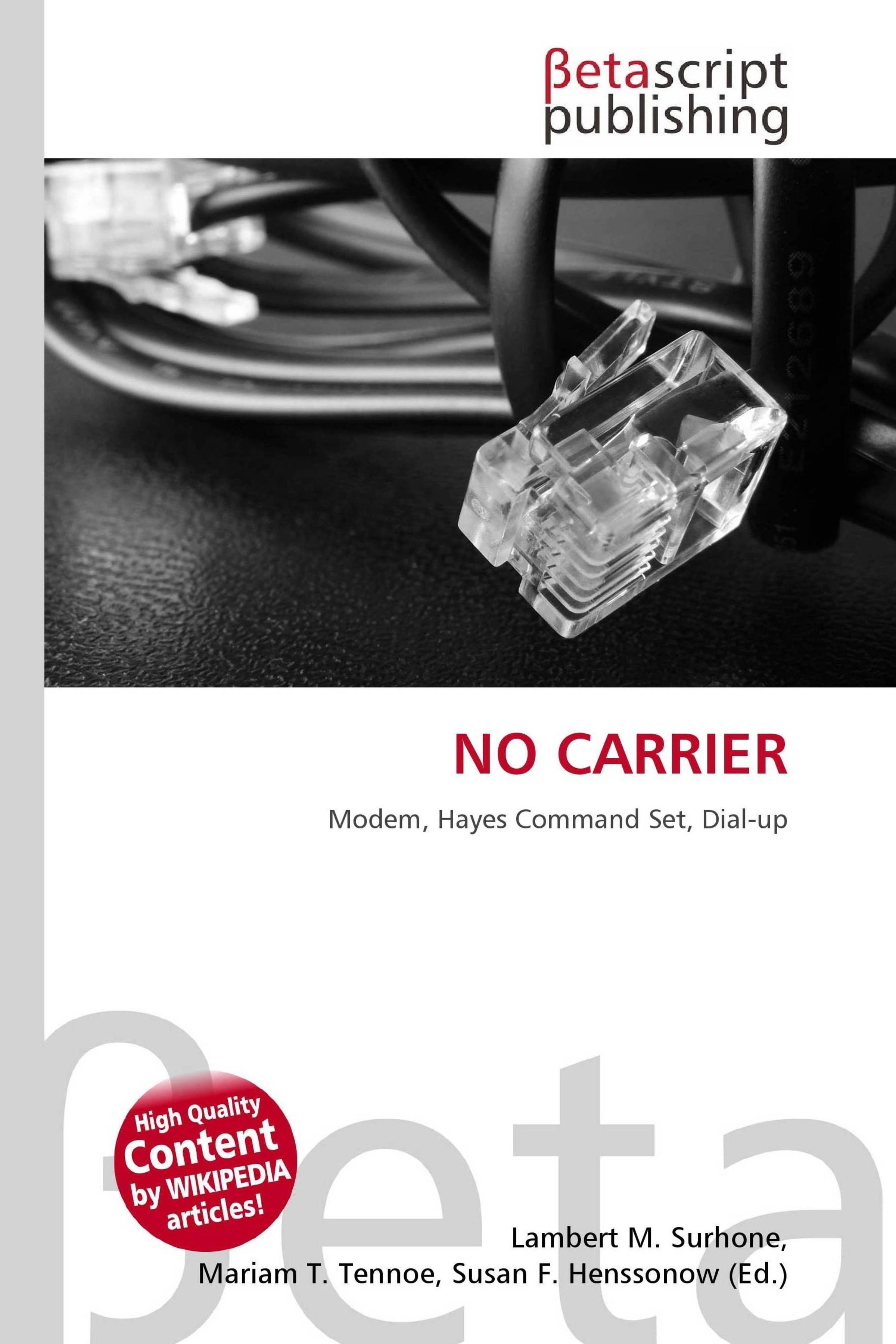 Text: "NO CARRIER", "Modem, Hayes Command Set, Dial-up". Schwarzweiß-Foto eines Telefonsteckers und Kabels., Buch