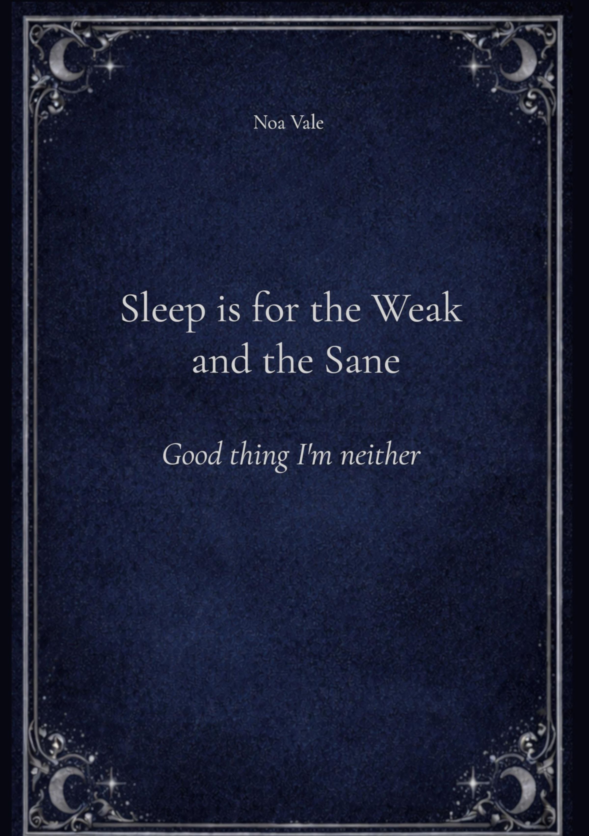 In this haunting collection, Noa Vale blends dark humor, poetic clarity, and unflinching honesty to explore insomnia and inner unrest. Between sleepless nights, emotional vulnerability, and a defiant will to endure, the texts invite readers into a raw and intimate landscape of exhaustion and resilience. Sleep is for the Weak and the Sane is an intense journey through restlessness, self-reflection, and the quiet strength required to keep going.