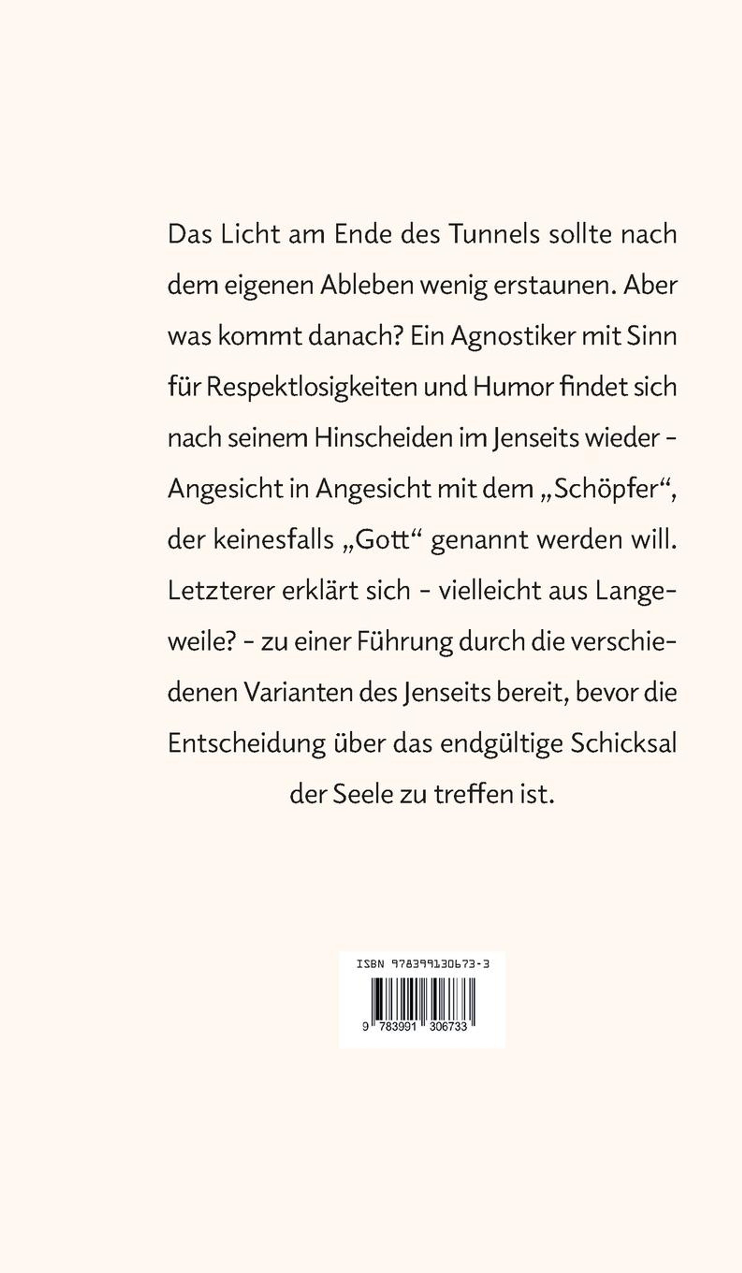 Ein notorischer Zweifler mit Sinn für Humor steht nach seinem Tod dem Schöpfer gegenüber. Um die endgültige Auflösung seiner Seele hinauszuzögern, muss er sich auf die Gesetze jenseitiger Welten und einen subtilen Machtkampf einlassen.