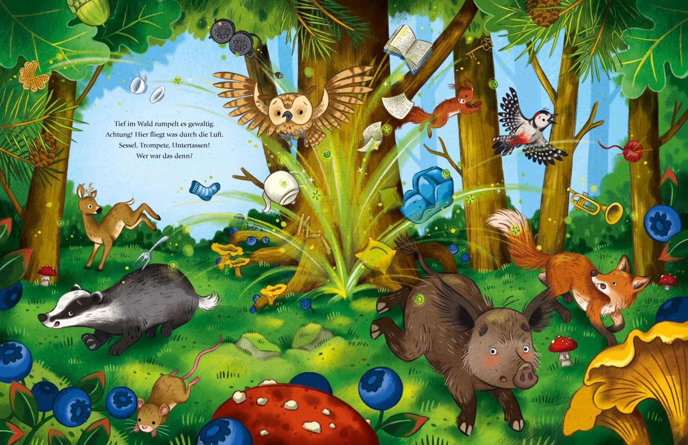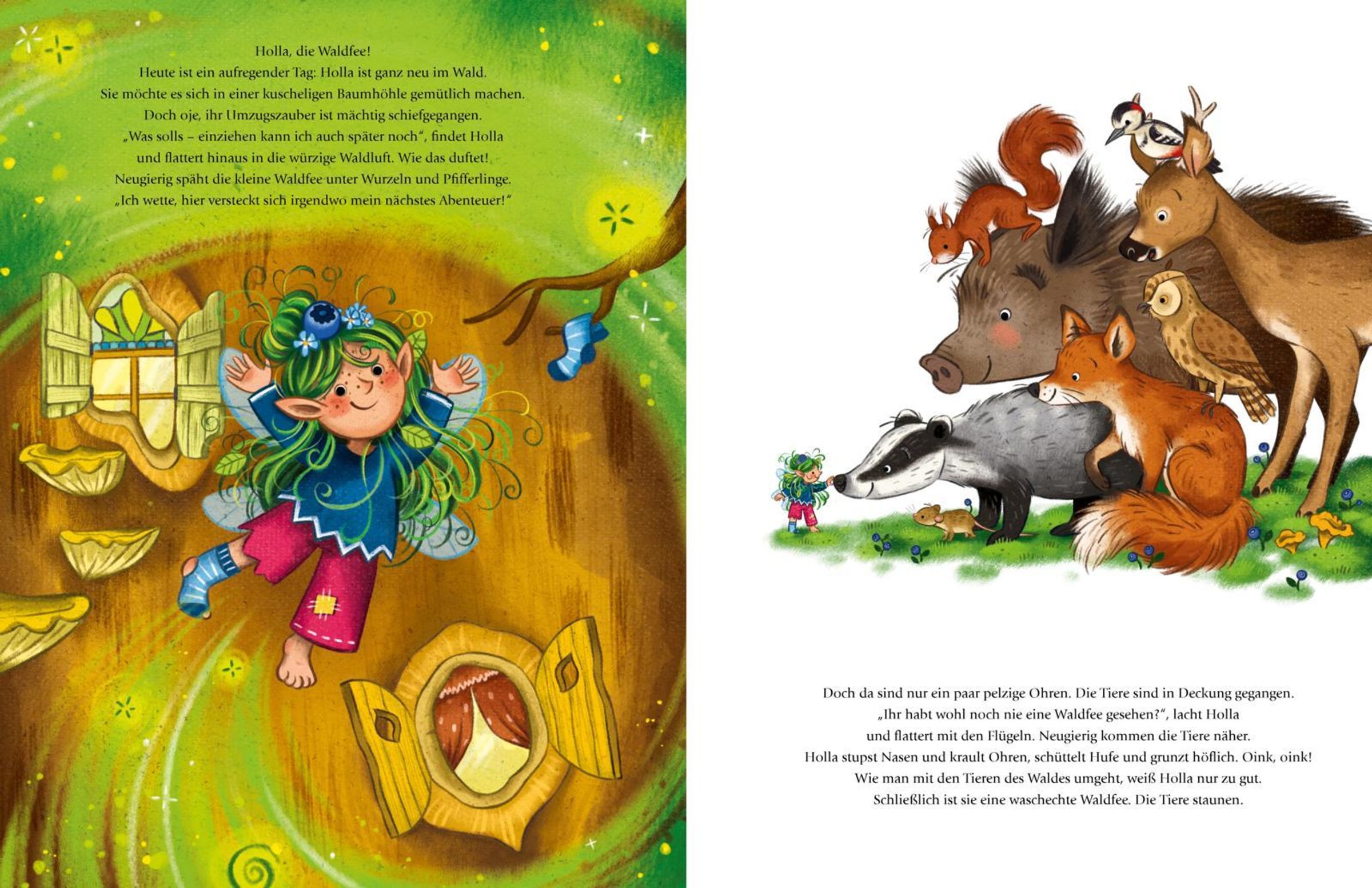Holla hat Zauberkräfte und ein riesengroßes Herz. Doch wenn sie den Tieren des Waldes mit ihrer Zwirbel-Wirbel-Magie helfen möchte, ist das Chaos vorprogrammiert! Da stürzt schon mal der Eichhörnchen-Kobel ein, den sie repariert hat. Leckere Riesenerdbeeren verschwinden wie von Zauberhand. Und das gemütliche Matschbad wird zum brodelig-grünen Sumpf! Nur gut, dass Schusselchen Holla niemals aufgibt. Mit ihrer unerschütterlichen Hingabe zeigt sie, was Freundschaft bedeutet: füreinander einstehen und Fehler akzeptieren. Auch wenn mal was schiefgeht, zusammen kann man so vieles wieder geradebiegen.
