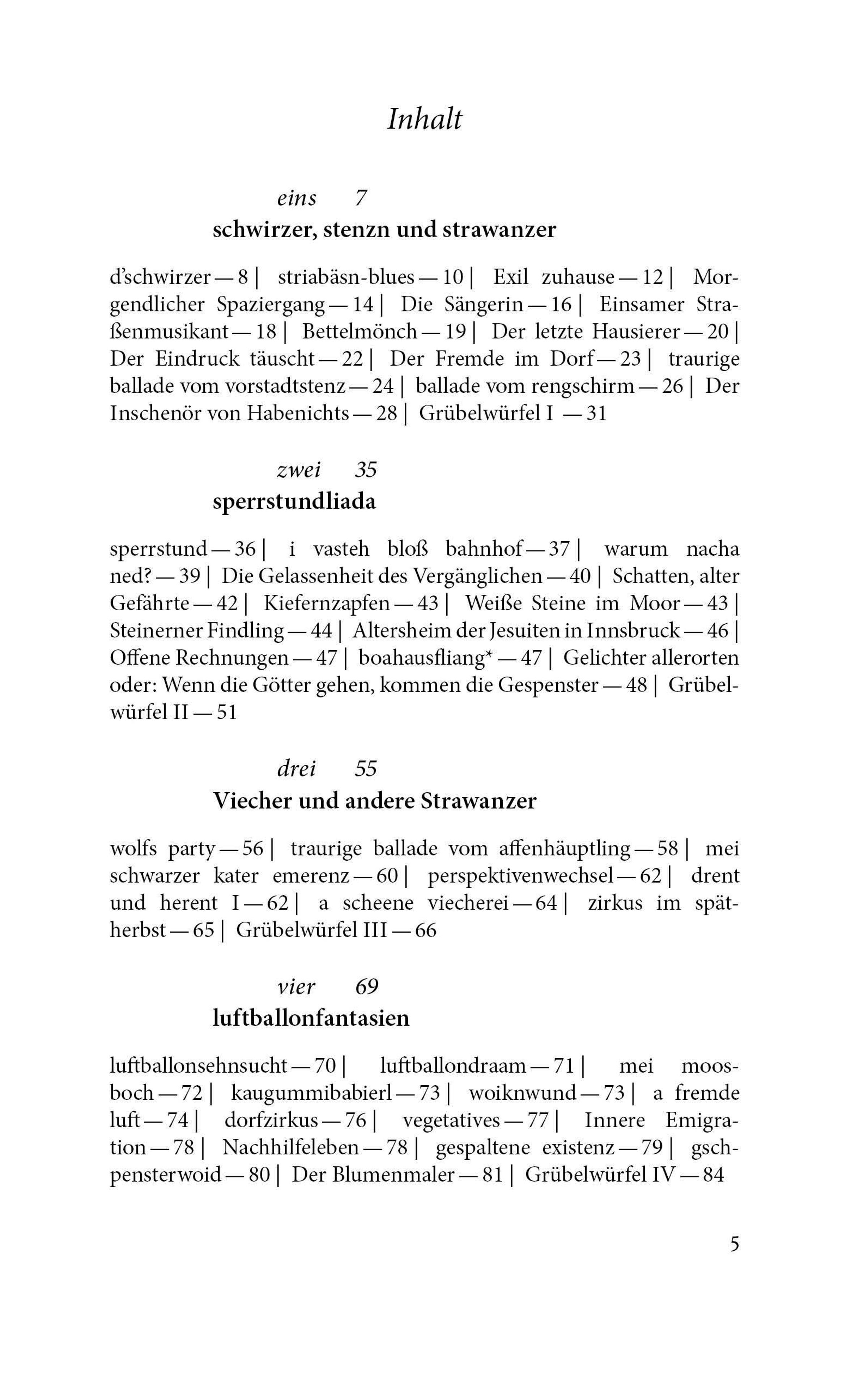 'Striabesn-Blues' ist den Außenseitern unserer Gesellschaft gewidmet. Sie vagabundieren herum, strawanzen und stehlen dem Herrgott (und nicht nur ihm) den Tag - so meint man landläufig. Ein 'Striabesn' ist also einer, der herumstreunt und überall ein bisschen 'hineinschmeckt', um sich dann sein eigenes Urteil zu bilden. Manchmal geht das gut und führt zu philosophischen Erkenntnissen, oft genug aber auch nicht. Dann verfällt der ein oder andere dem 'Blues'. Aber sind wir nicht alle 'Striabesn'? Strawanzen kann man nämlich physisch, freilich auch geistig, literarisch und poetisch. 'Rumstrian' kann auch die Sprache. Die Prosa- und Lyriktexte von Norbert Göttler sind sowohl in bairischem Dialekt als auch in Hochsprache geschrieben. Das widerspricht sich nicht, sondern ergänzt sich. Beide Formen spielen sich den Ball gegenseitig zu. Oder treiben sich, im Idealfall, gegenseitig an. Ebenso ist es im Miteinander von gereimten und ungereimten Gedichten. Der Reim, von zeitgenössischen Autoren und Autorinnen nur mehr selten verwendet, hat seine bleibende Bedeutung in der Ballade. Gerade in ihrer mundartlichen Form hat sie ihren Charme in bissiger Authentizität und politischer Aufmüpfigkeit bewahrt.