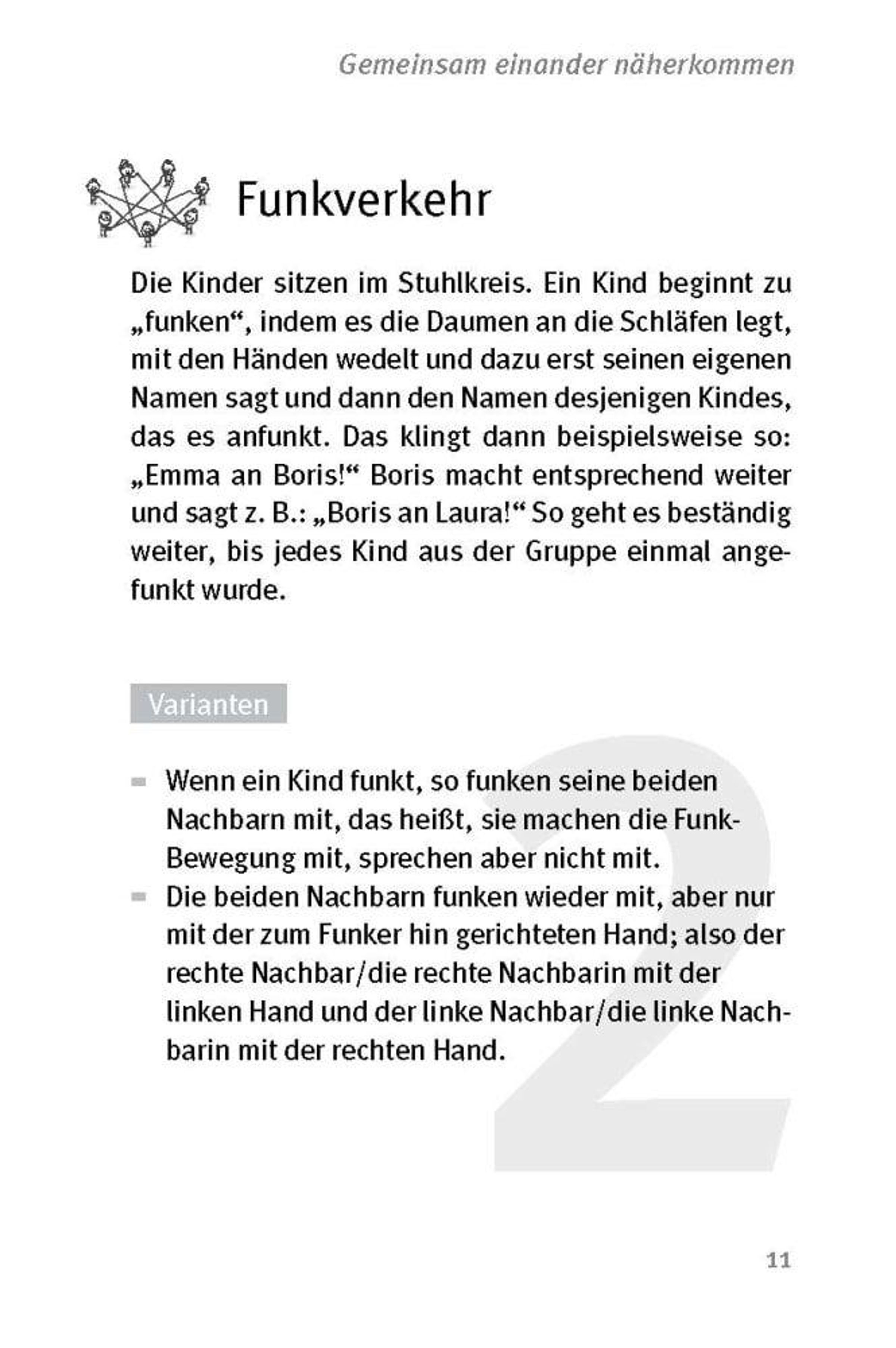 Ob im Klassenzimmer, im Hort oder in der Vorschule: Viele Übungen funktionieren als Gruppenspiele ohne Material und lassen sich spontan einsetzen. Die Kinder lernen, Absprachen einzuhalten, fair miteinander umzugehen und Aufgaben im Team zu lösen. Sie probieren sich bei kreativen Rollenspielen aus, werden körperlich aktiv oder kommen beim gemeinsamen Tun einfach zur Ruhe.
