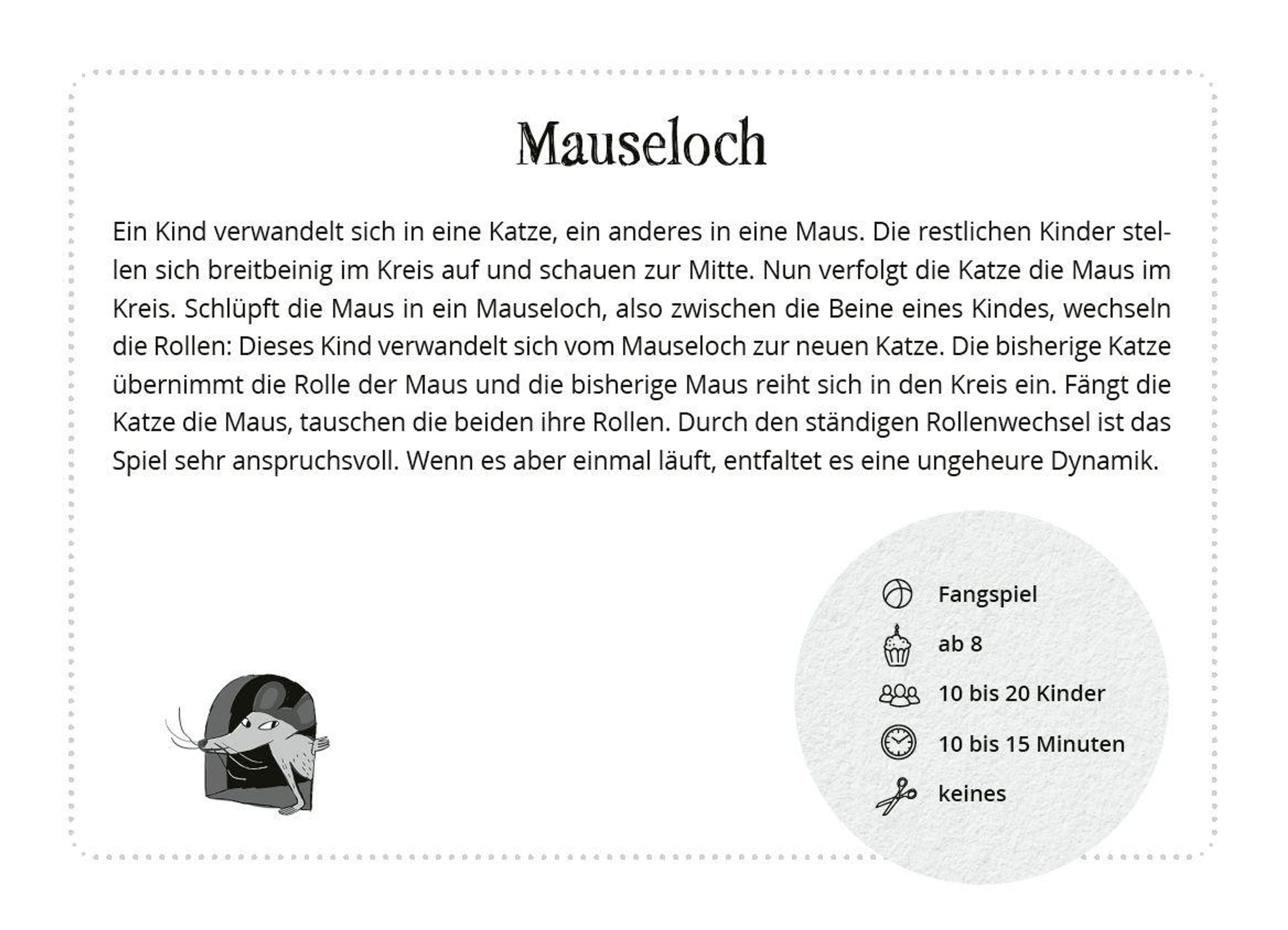 Mückenflug, Bäumchen wechsle dich, Bärenjagd ... Dieses Kartenset ist eine gekonnte Sammlung aus längst vergessenen sowie neuen Spieleklassikern. Sie bietet pädagogischen Fachkräften sowie Quereinsteiger: innen in Ganztag und Hort ein Standardrepertoire an Bewegungs-, Fang-, Such-, Wahrnehmungs- und Versteckspielen. Die Spiele eignen sich für kleine sowie große Gruppen, für längere sowie kürzere Spielphasen und besonders gut für das Spielen im Wald und auf der Wiese. Alle Spiele präsentieren sich einfach erfassbar und übersichtlich mit hilfreichen Angaben zu Alter, Dauer, Spielart und Materialien. Ohne großen Aufwand, einfach spiel- und integrierbar in jeden Tagesablauf!