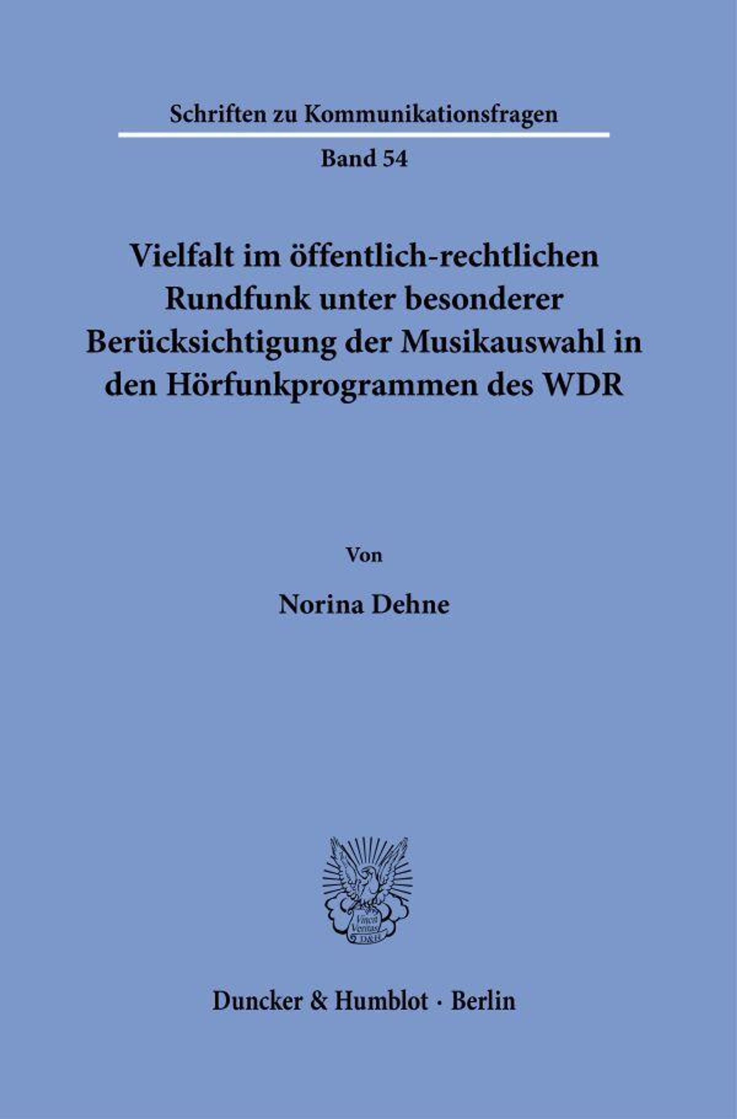 Der Artikel Norina Dehne: Vielfalt im öffentlich-rechtlichen Rundfunk unter besonderer Berücksichtigung der Musikauswahl in den Hörfunkprogrammen des WDR wurde in den Warenkorb gelegt.