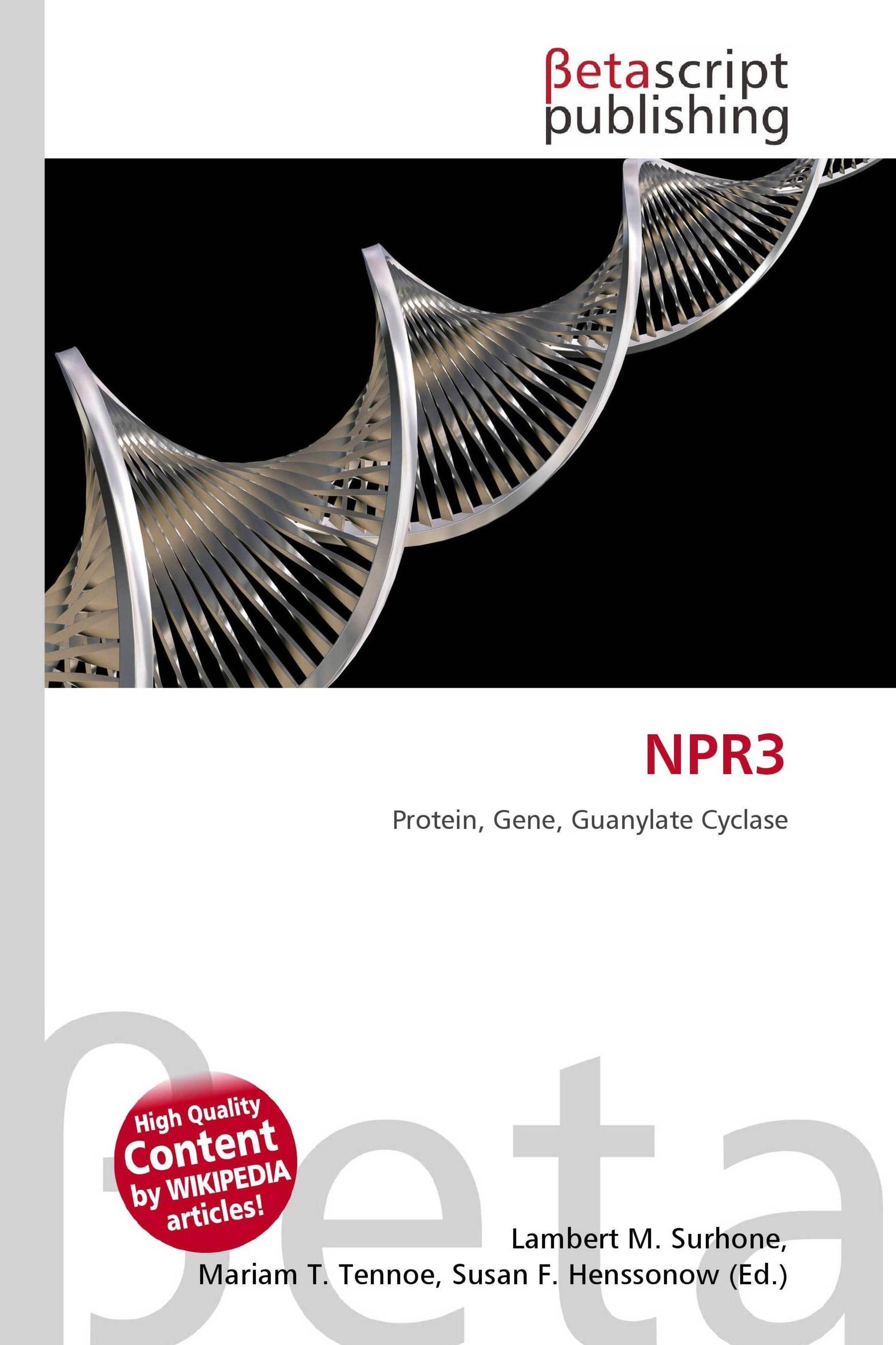 Text: "NPR3 Protein, Gene, Guanylate Cyclase." Logo: Betascript Publishing. Bild: DNA-Doppelhelix auf schwarzem Hintergrund., Buch