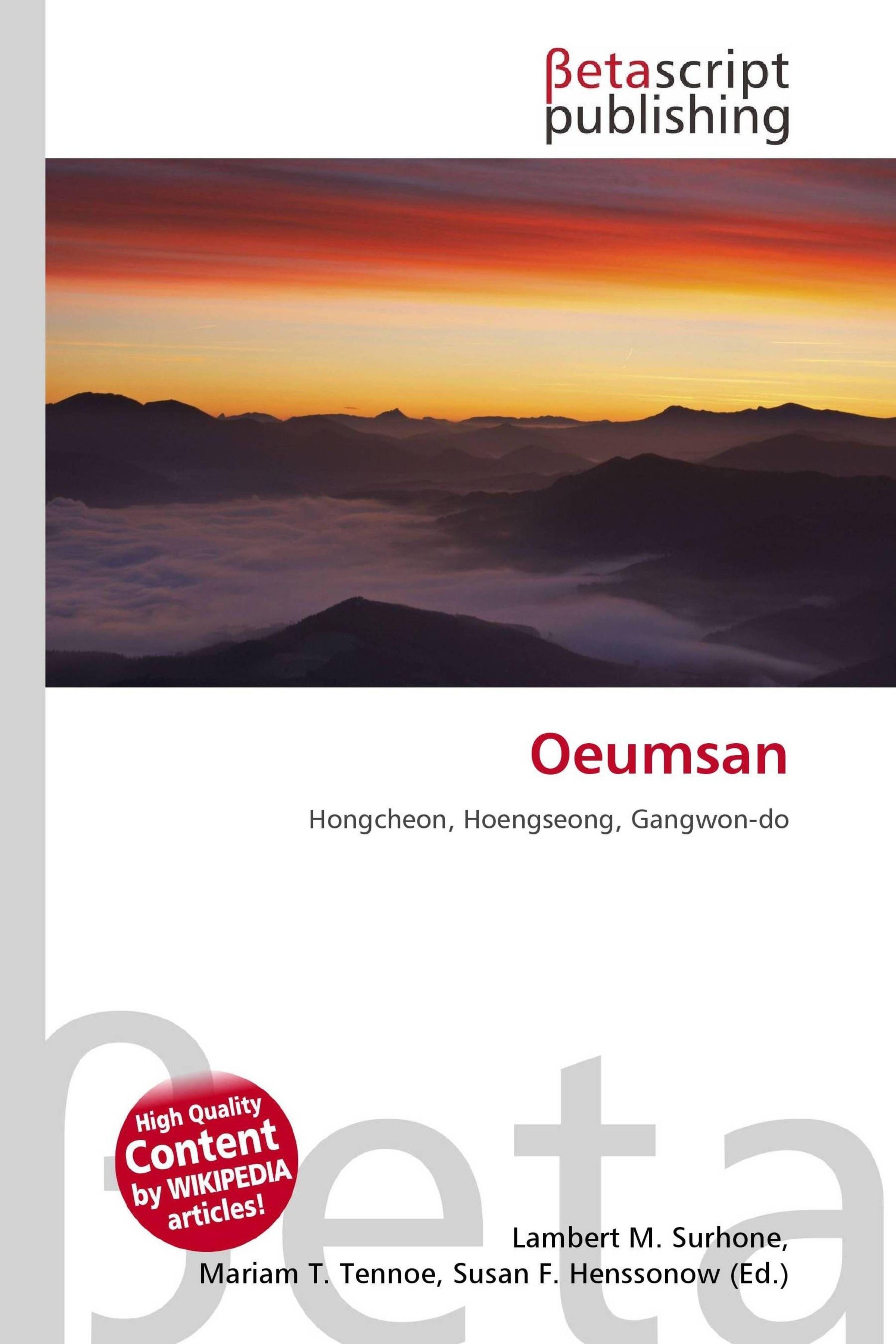 Please note that the content of this book primarily consists of articles available from Wikipedia or other free sources online. Oeumsan is a mountain in the counties of Hongcheon and Hoengseong, Gangwon-do in South Korea. It has an elevation of 930 m (3, 051 ft). Hongcheon (Hongcheon-gun) is a county in Gangwon Province, South Korea. It is the birthplace of historic general Choi Yeong of Goryeo. Gangwon-do is a province of South Korea, with its capital at Chuncheon. Before the division of Korea in 1945, Gangwon and its North Korean neighbour Kangwn formed a single province.
