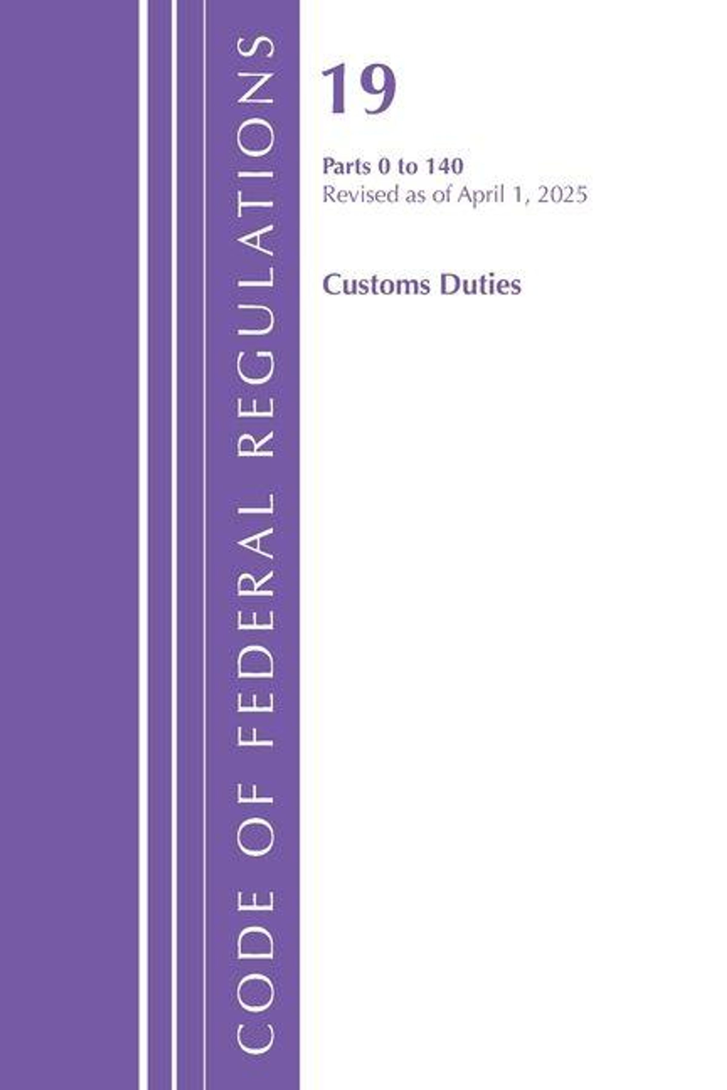 Code of Federal Regulations, Title 19 Customs Duties 0 - 140, Revised as of April 1, 2025