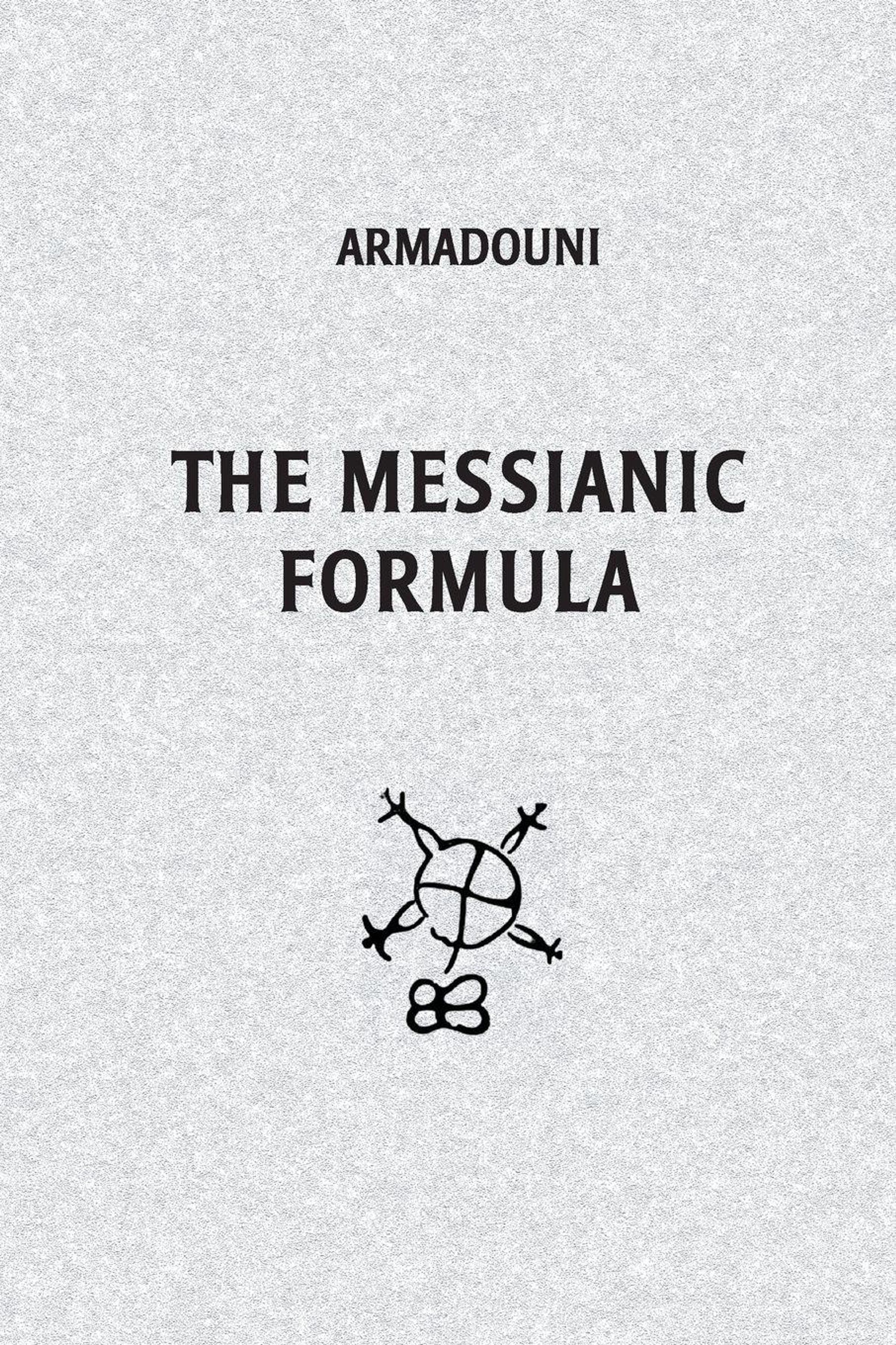 "ARMAOUNI. THE MESSIANIC FORMULA." Darunter ein abstraktes Symbol: Eine Kreisform mit vier verlängerten Linien., Buch