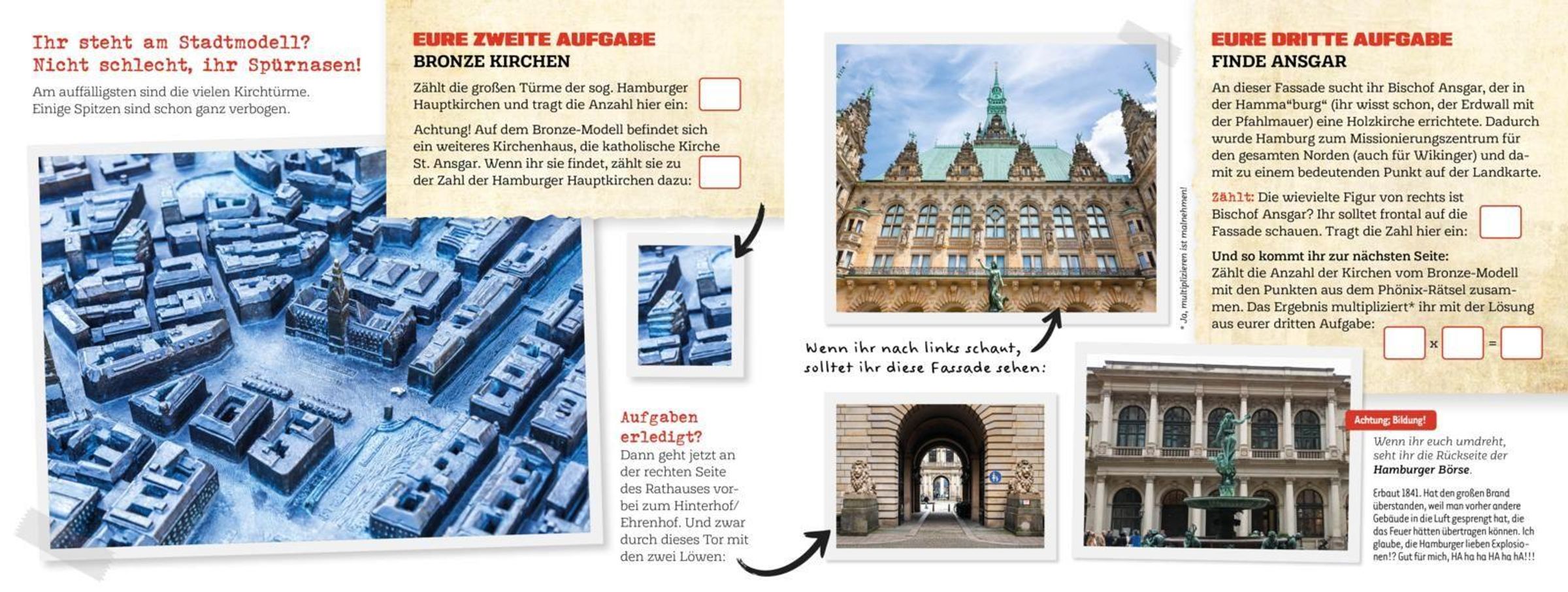 Diese humorvolle Stadtführung verbindet Stadterkundung mit kniffligem Rätselspaß. Spielerisch führt euch das Buch durch Hamburgs spannendste Orte wie bspw. die Speicherstadt, das Rathaus, die Hafencity oder die Elphi. Das Buch hat geschlossene Seiten zum Auftrennen und nur durch das Lösen der Aufgaben erfährst Du, welche Seite als nächstes geöffnet werden darf und an welchem Spielort es für dich weitergeht. Perfekt für alle, die Hamburg auf humorvolle und interaktive Weise erleben oder neu entdecken möchten! Informativ und spannend, mit hanseatischem Humor.