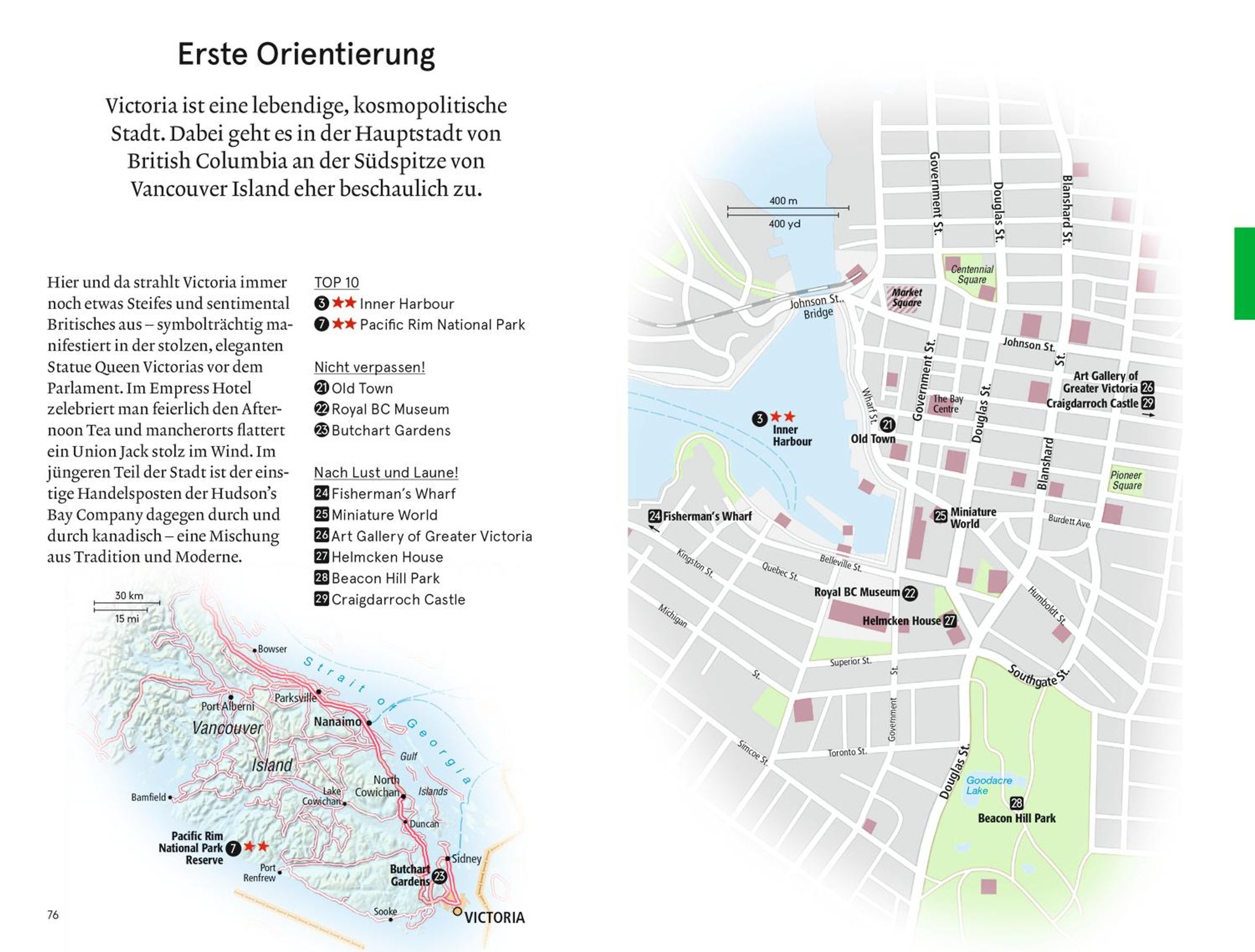 Als wenn er genau wüsste, was Ihnen gefällt - planen Sie morgens schnell und unkompliziert den Tag mit dem Baedeker SMART Reiseführer. Beginnen Sie Ihren Urlaub in Vancouver und den kanadischen Rockies mit einem Besuch des Public Markets auf Granville Island . Erkunden Sie Vancouvers verschiedene Stadtviertel von Downtown bis Gastown und spazieren Sie durch den Stanley Park mit Blick auf die atemberaubende Skyline. In Calgary erwartet Sie auf dem knapp 200 m hohen Calgary Tower eine fantastische Aussicht auf die schneebedeckten Rocky Mountains . Wie wäre es zwischendurch mit einer >>kleinen Pause<<? In der charmanten Altstadt von Victoria ist der Bastion Square mit seinen Lokalen und Cafés ein idealer Platz für eine Kaffeepause. Ein Kontrastprogramm erwartet Sie im lieblichen Okanagan Valley . Radeln Sie durch die grünen Weinhänge, stürzen Sie sich in einen der herrlich blauen Seen und genießen Sie den Sonnenuntergang bei einem Glas Wein. Neben allen klassischen Sehenswürdigkeiten halten wir Reisetipps für ganz besondere Urlaubstage für Ihren Kanada-Urlaub bereit. Mit unseren inspirierenden Ideen sorgen wir für eine entspannte Urlaubsplanung und machen Ihre Reise nach Vancouver - Kanadas Perle am Pazifik - zum unvergesslichen Erlebnis.