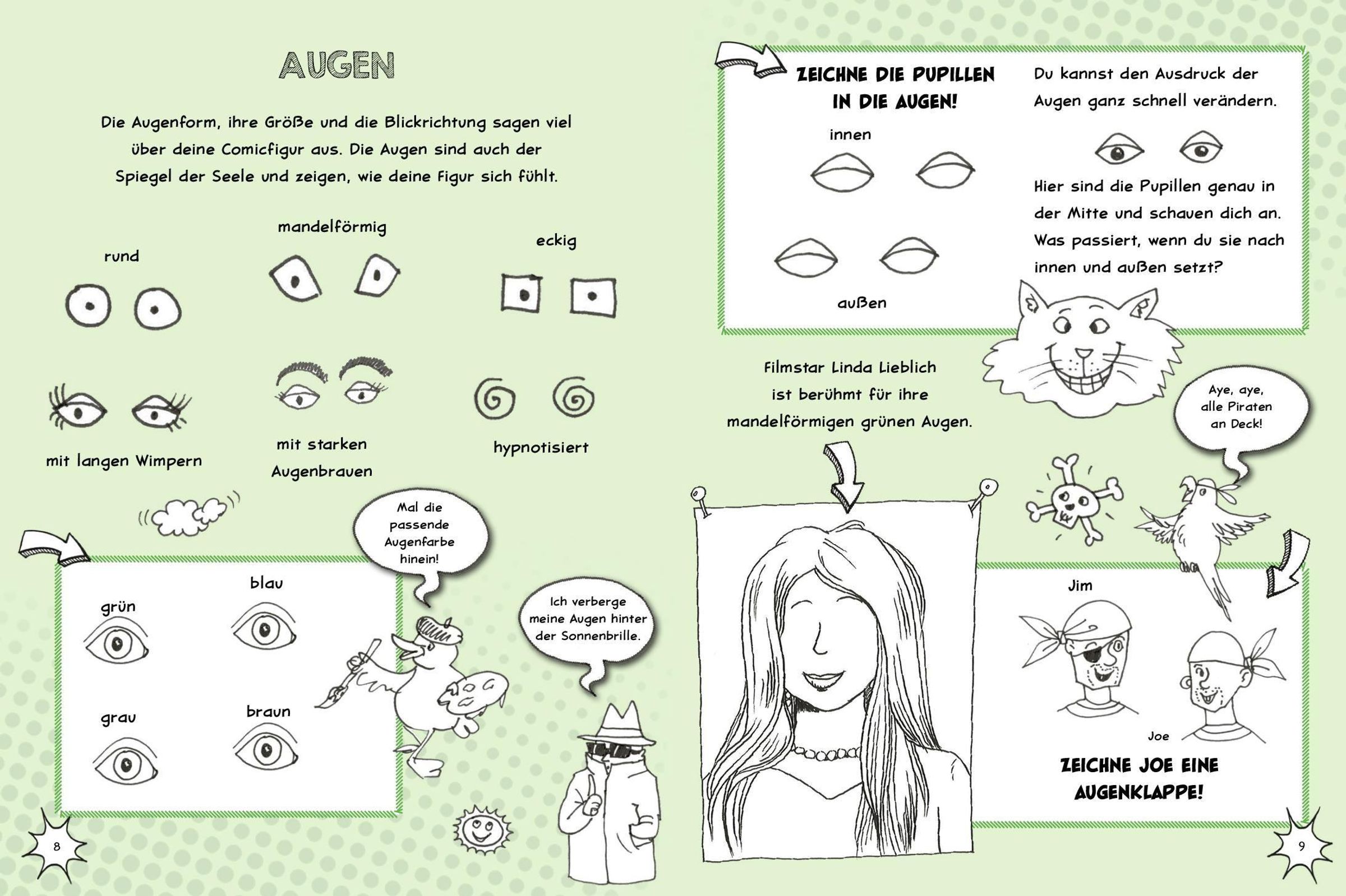 Die große Vielfalt an Motiven macht den Einstieg leicht: lustige Schulabenteuer, Fantasy-Welten, Superhelden-Action, Tier-Comics, Slice-of-Life oder Science-Fiction -- du entscheidest, was du zeichnest. Das Übungsbuch zeigt dir, wie du Hintergründe vereinfachst, Perspektive spielerisch ausprobierst und mit Linien, Schraffuren und einfachen Effekten (Bewegungslinien, Speed-Effects, Sound-Words) Atmosphäre schaffst. Außerdem lernst du, Fehler als Freunde zu sehen: skizzieren, verbessern, neu versuchen -- bis du zufrieden bist. Dank klarer Schritt-für-Schritt-Anleitungen, Beispielen und Platz für eigene Skizzen kommst du sicher voran, baust Selbstvertrauen auf und entwickelst deinen ganz persönlichen Zeichenstil.