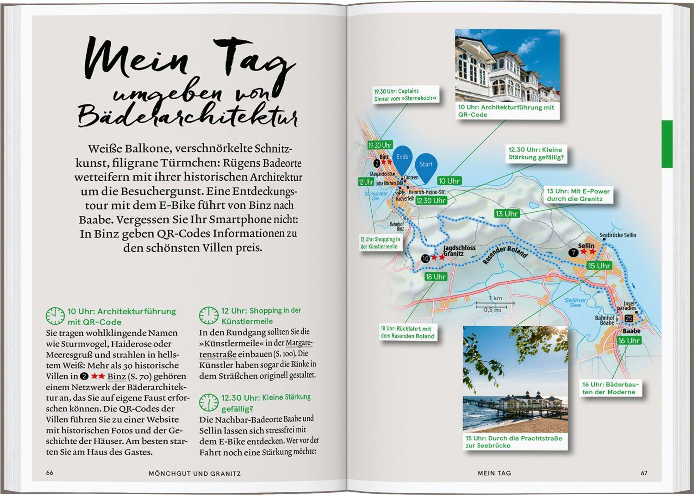 Auf der wunderschönen Ostseeinsel Rügen warten idyllische Strände, herrliche Wälder und eine faszinierende Kreideküste mit mehr als 100 Meter hohen Felsen. Besuchen Sie verträumte Örtchen wie Göhren, Putbus oder Binz mit pittoresker Bäderarchitektur direkt an der Ostseeküste und Sandstrand so weit das Auge reicht. Kommen Sie mit auf die autofreie Insel Hiddensee, entdecken Sie das traumhaft bewaldete Hochland Dornbusch und genießen Sie die wunderbare Architektur der historischen Seehandelsstadt Stralsund. Mit dem Baedeker SMART haben Sie den perfekten Reiseführer an Ihrer Seite für Ihren Urlaub auf Rügen. Wir verraten Ihnen, wo Sie das Besondere entdecken, traditionelle Fischgerichte essen und wie Sie Sightseeing auf Rügen perfekt mit einem Hiddensee-Urlaub verbinden.
