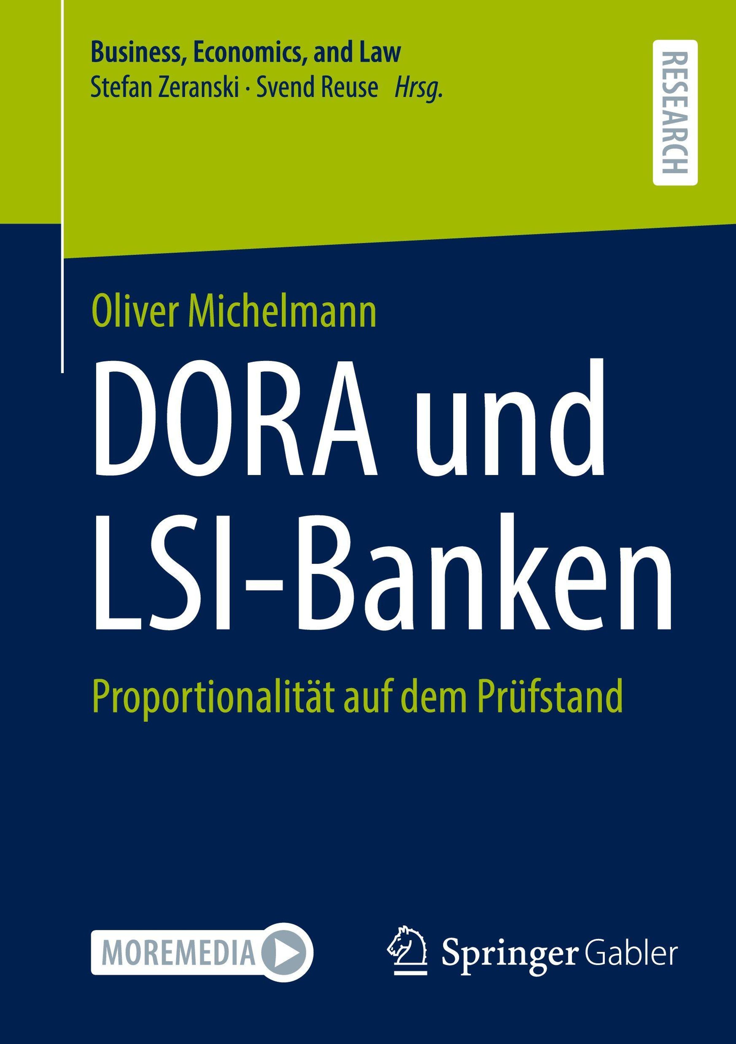 Titel: "DORA und LSI-Banken". Untertitel: "Proportionalität auf dem Prüfstand". Autoren: Oliver Michelmann., Buch