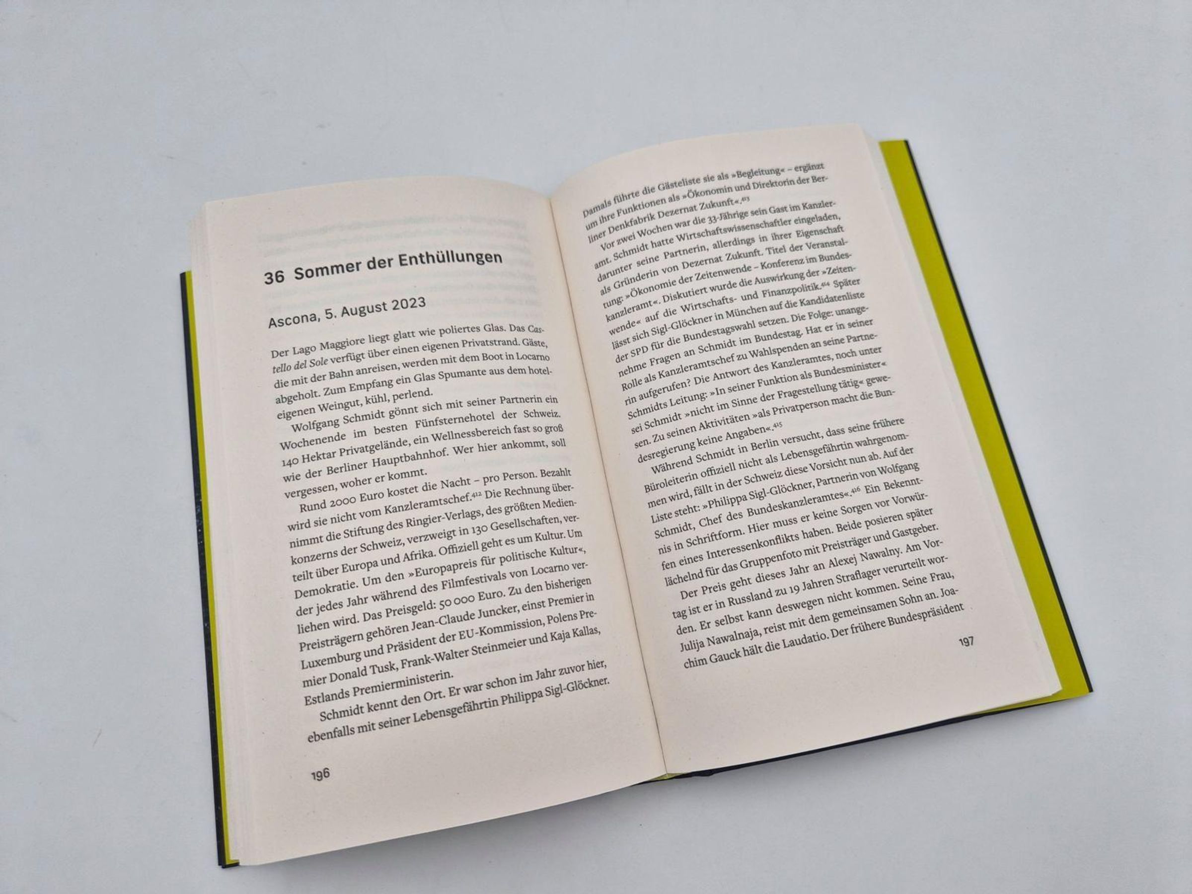„DIE SPRENGUNG“ in Gelb, Autoren: Oliver Schröm und Ulrich Thiele. Illustration: sprudelndes Wasser., Buch