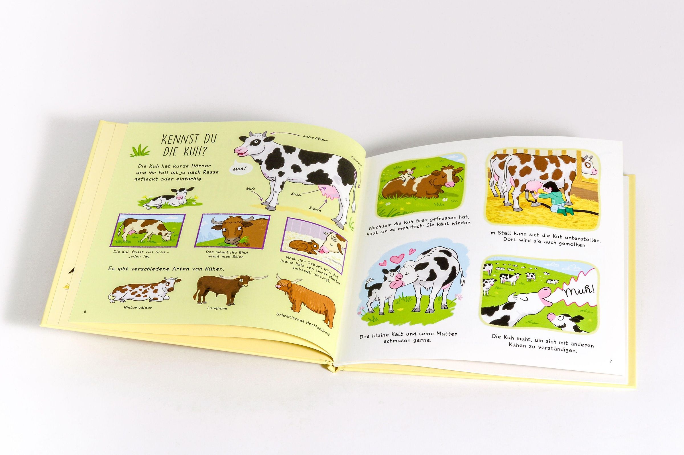 - Mit kurzen, kindgerechten Texten über die tierischen Merkmale, Verhalten, Vorlieben und Bauernhoferzeugnisse