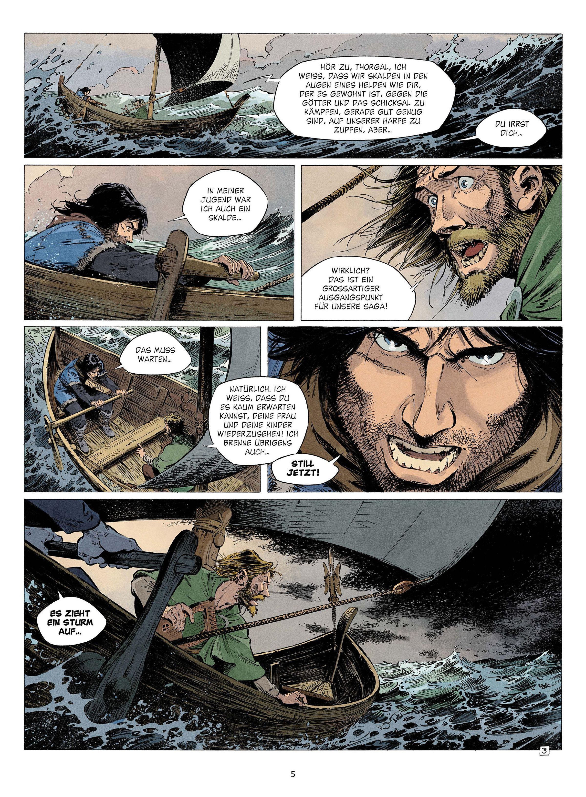 Als er von einem übernatürlichen Sturm überrascht wird und auf einer Eisscholle strandet, macht Thorgal die Entdeckung, dass der Fimbulwinter, der große Frost, der Ragnarök ankündigt, unmittelbar bevorsteht. Um seine Familie vor einem eisigen Ende zu bewahren, muss er sich ins Herz des Reichs der Riesen wagen und sich den Flammen von Muspellsheim stellen. Gemeinsam mit Verbündeten wie der rätselhaften Hexe Vaska, der Tochter der Herrscherin der Frostinsel, begibt Thorgal sich auf die gefahrvolle Suche nach dem magischen Feuer, das den ewigen Winter zurückdrängen soll. Die Zukunft aller Welten liegt nun in seinen Händen.