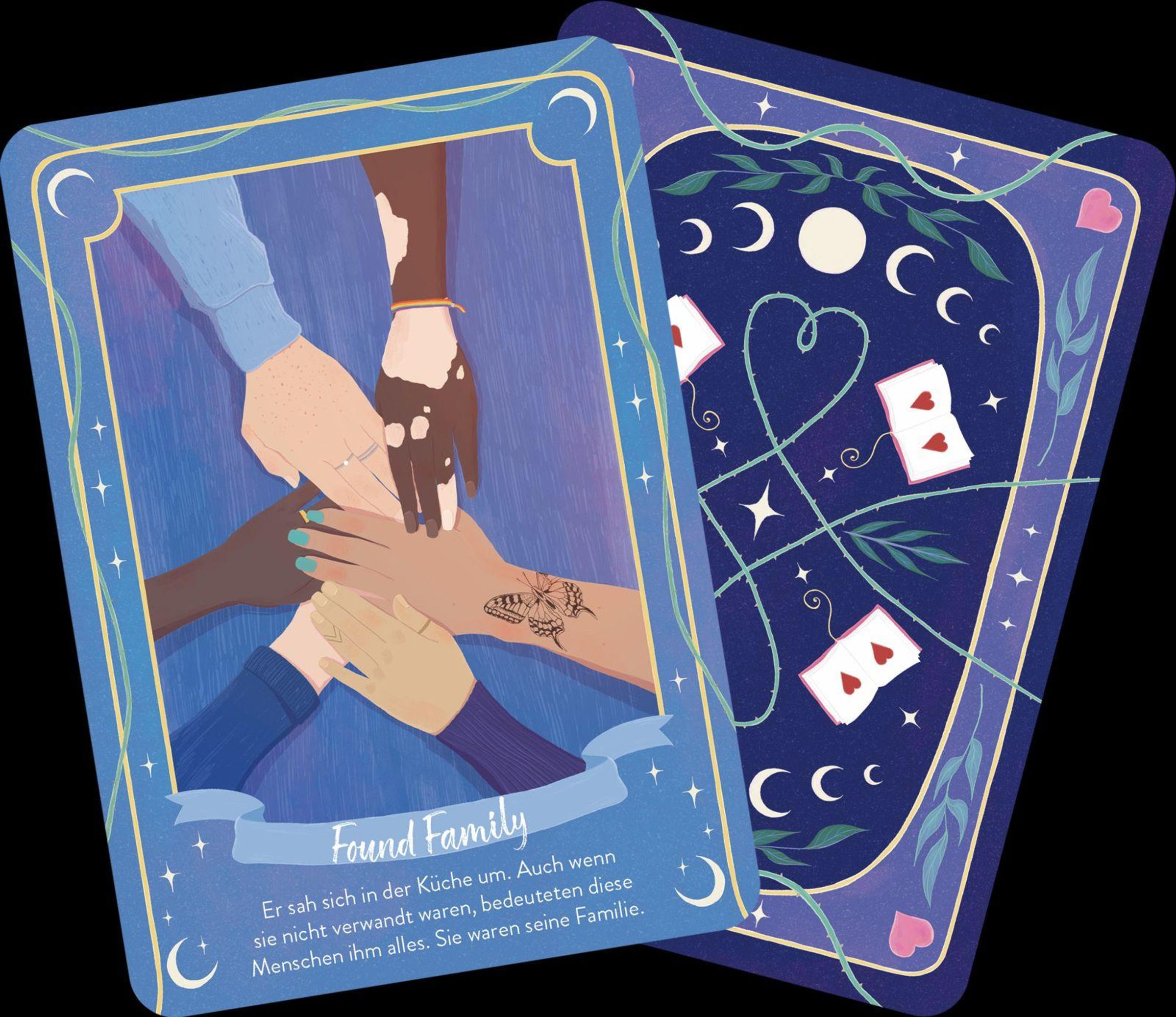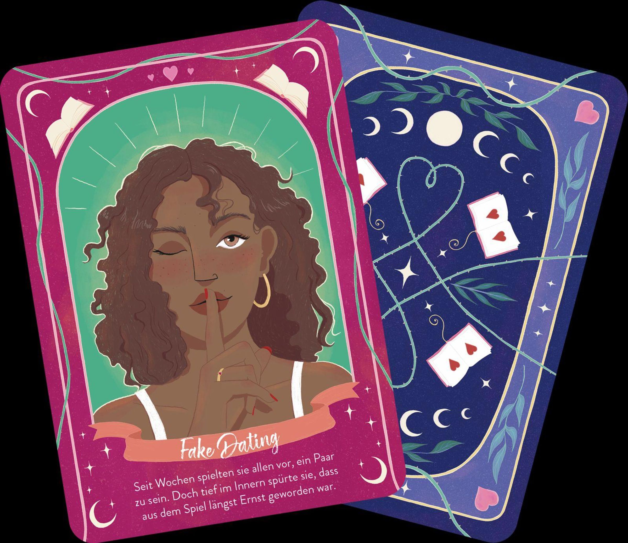Du kennst Enemies to Lovers , Only One Horse und Fated Mates und hast dich schon immer gefragt, welche Tropes zu deinem Leben passen? Mit diesem hochwertig gestalteten Romance-Orakelset kannst du genau das herausfinden: Ziehe einfach eine der 50 mit Goldschnitt veredelten Karten und lass das Schicksal darüber entscheiden! Auf jeder der 50 wunderschön illustrierten, charactercardartigen Karten findest du einen Trope oder ein Motiv aus Romance- und New-Adult-Literatur. Die kleinen, zu jedem Trope passenden Texte im Booklet können dir als Inspiration, Impuls oder Entscheidungshilfe für dein Leben dienen. Nutze das Romance-Orakel entweder allein oder mache daraus ein unterhaltsames Spiel für ein Buchclub-Treffen oder einen Abend mit Freund*innen.