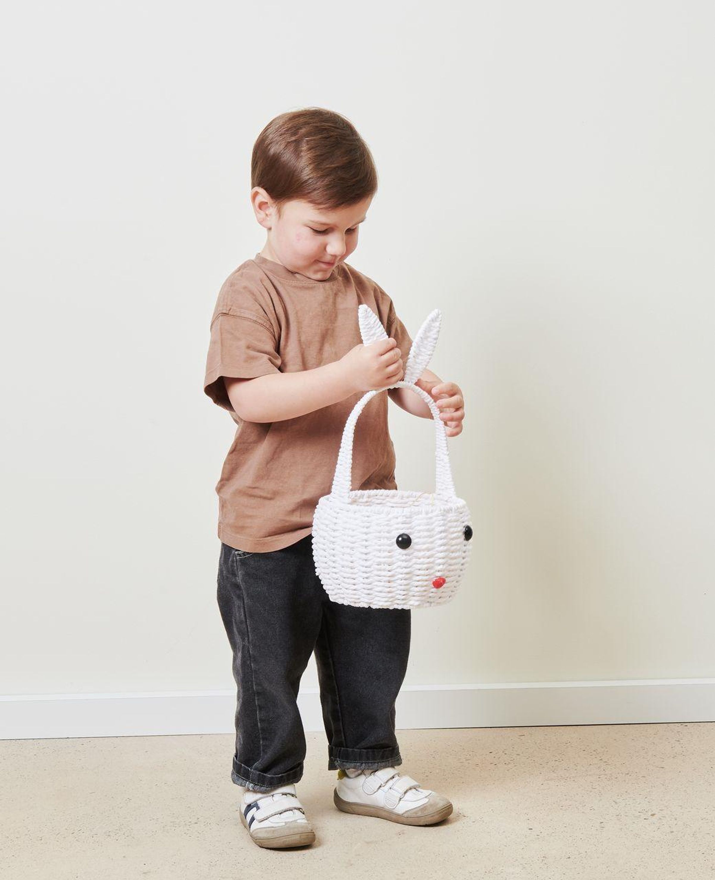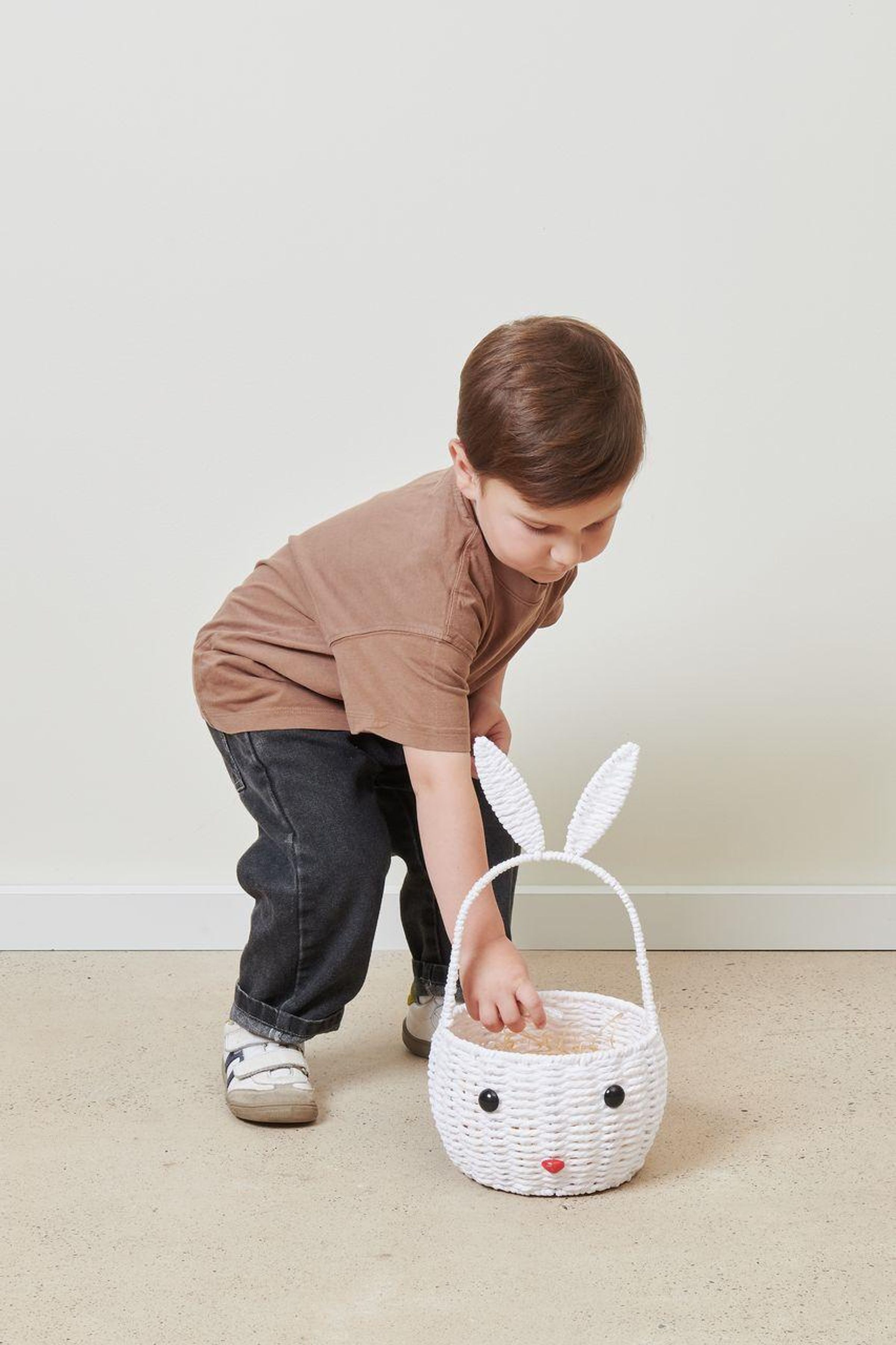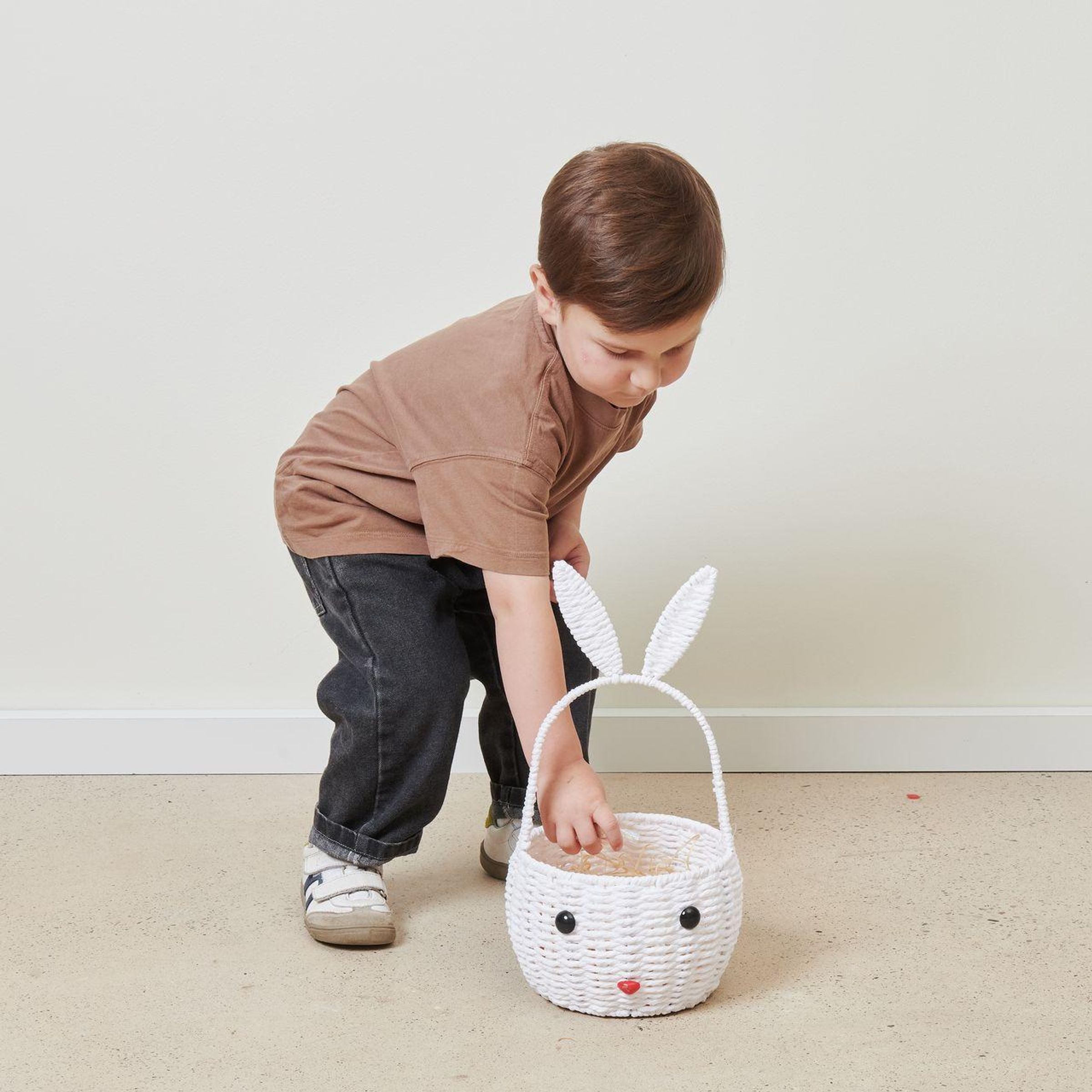 Osterkorb Hase mit Henkel, Weiß, 36,5 x Ø 18cm